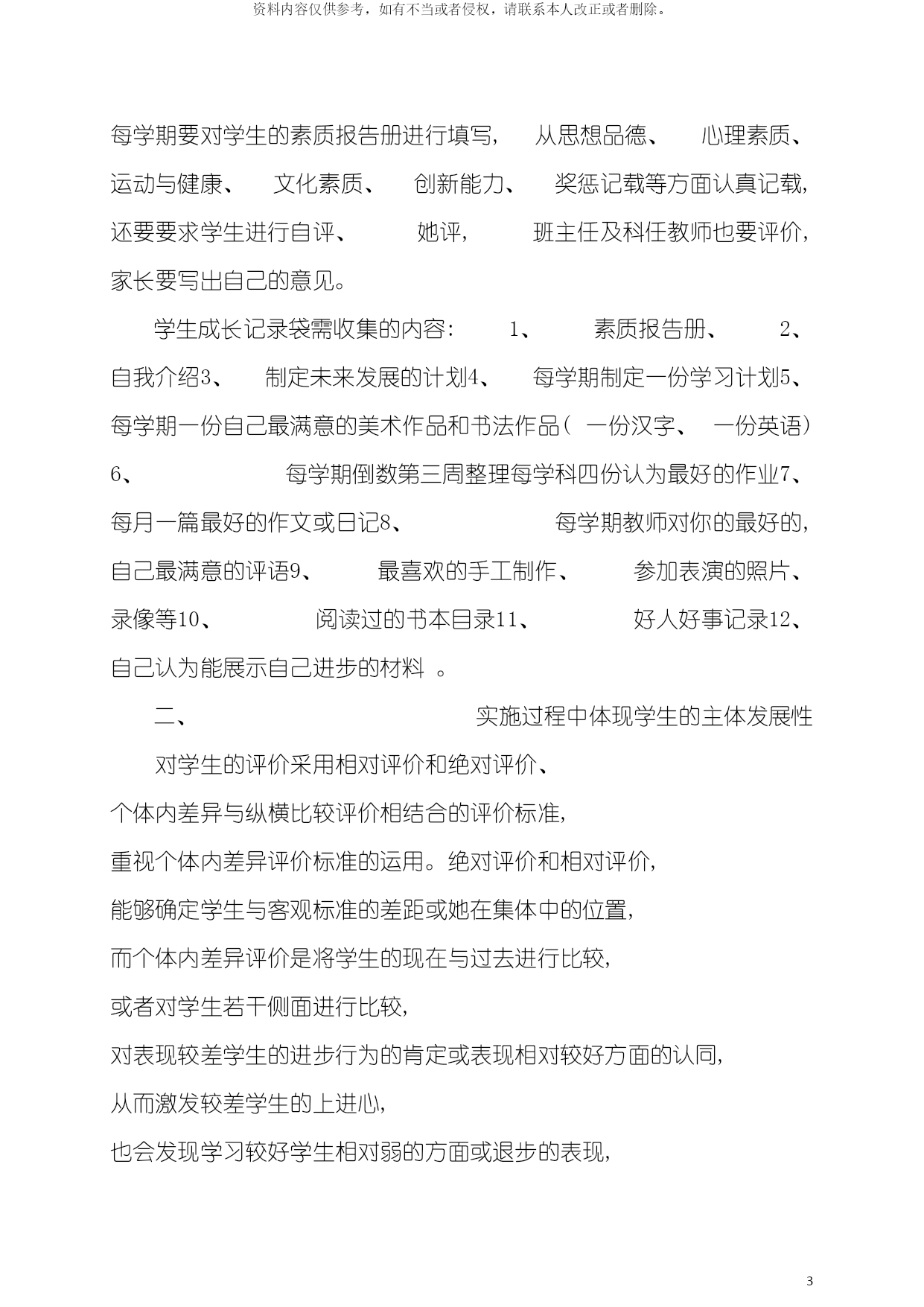 沙井乡沙井小学学生评价制度沙井小学学生评价制度学生评价是学校教育评价的核心。评价的主线目的是促进教育对象生动、活泼、积极地发展,评价的依据是教育方针规定的总目的和各级各类学校的具体规定。要树立对的的学生观,以促进每一个学生的发展作为评价的主线出发点和最终目的。在推动课程改革的今天,学生评价,要打破以考试作为唯一评价学生手段的老框框,成绩不再是衡量一个学生优秀与否的唯一标准,不再是家长了解孩子在校表现的唯一途径。在评价学生方面,结合有关规定,制定我校学生评价制度。一、结合学校实际建立学生成长记录袋。每位学生