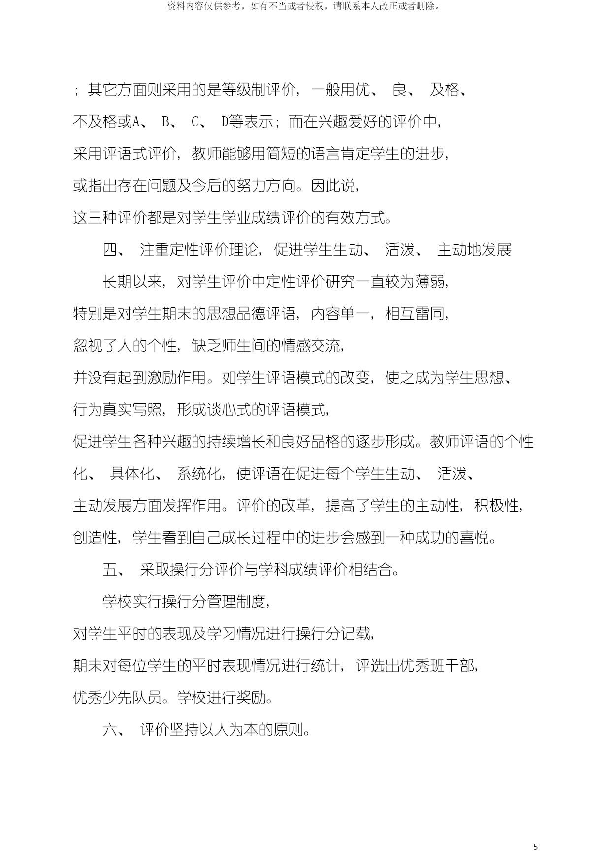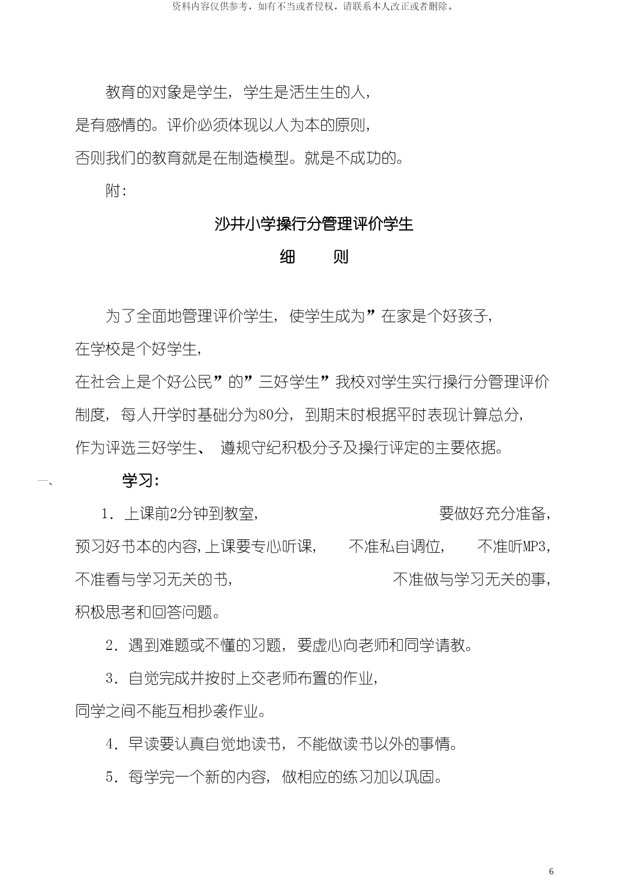PAGE\*MERGEFORMAT8沙井乡沙井小学学生评价制度资料内容仅供参考,如有不当或者侵权,请联系本人改正或者删除。沙井乡沙井小学学生评价制度沙井小学学生评价制度学生评价是学校教育评价的核心。评价的根本目的是促进教育对象生动、活泼、主动地发展,评价的依据是教育方针规定的总目标和各级各类学校的具体要求。要树立正确的学生观,以促进每一个学生的发展作为评价的根本出发点和最终目的。在推进课程改革的今天,学生评价,要打破以考试作为唯一评价学生手段的老框框,成绩不再是衡量一个学生优秀与否的唯一标准,不再是