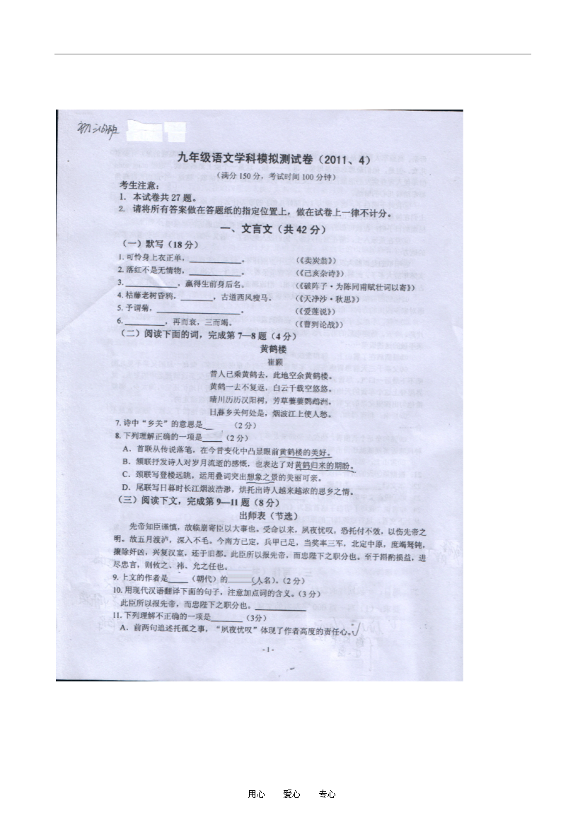 试题-上海-2011_上海市闸北区2011年4月中考语文二模试题(扫描版) 上教版.rar