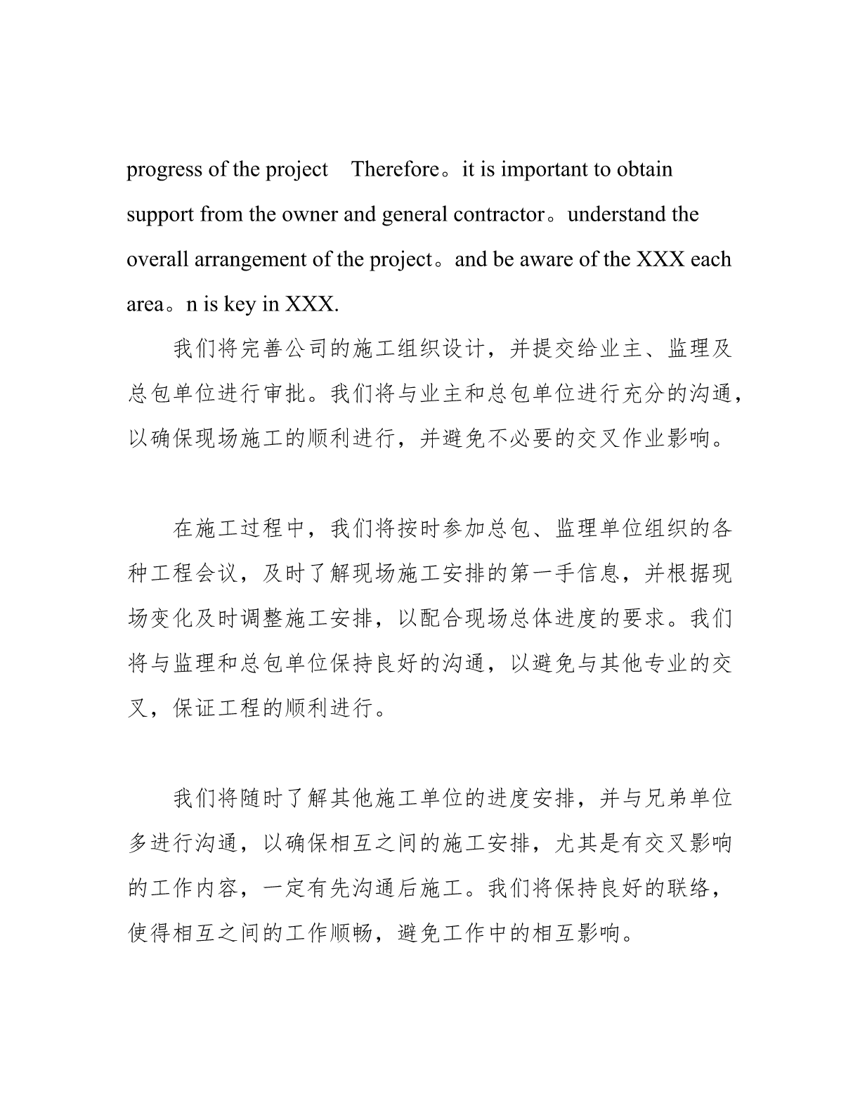 工程特点、重点和难点分析本工程装修标准高,装修面积大,工期短,多区域及大面积同时展开施工,是本工程的主要特点。1、工作量大,工期紧急同时虽然本标段工程装饰内容多属于普通工作,但装饰要求高,施工工作面大,施工工期紧,协调配合工作至关重要,在业主规定的工期内完成整个工程,是有一定的难度。但是,根据现场条件,凭我公司强大的实力和丰富的施工经验,在制订好合理的施工组织设计及管理、沟通、协调良好,我们有信心保质保量按期完成任务。2、施工一次投入量大由于工程量大和工期紧迫,全面铺开施工,周转材料的一次性投入量巨大.短