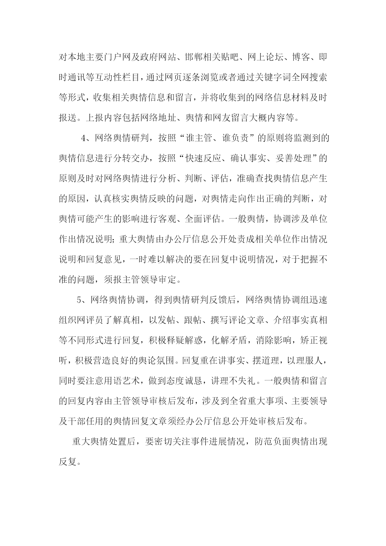 关于加强网络舆情管理工作暂行实施方案为进一步加强网络舆情监测,防止不良信息对政府的侵害,有效防范网络舆情事件发生,掌握网络舆论主动权,加强对网络舆情的预警防范和监测引导,形成积极向上的主流舆论,营造良好的舆论环境,促进和保障政府网络信息服务健康、有序发展,现结合我省实际,制定以下实施方案。一、工作目标加强网上舆情监控,及时掌握舆情动态,坚决封堵、删除各种有害信息,及时掌握互联网等网络媒体对全省的工作动态、干部队伍建设、社情民意等方面信息的报道及评论,加强正面引导,释疑解惑,化解矛盾,消除不良影响,树立我省