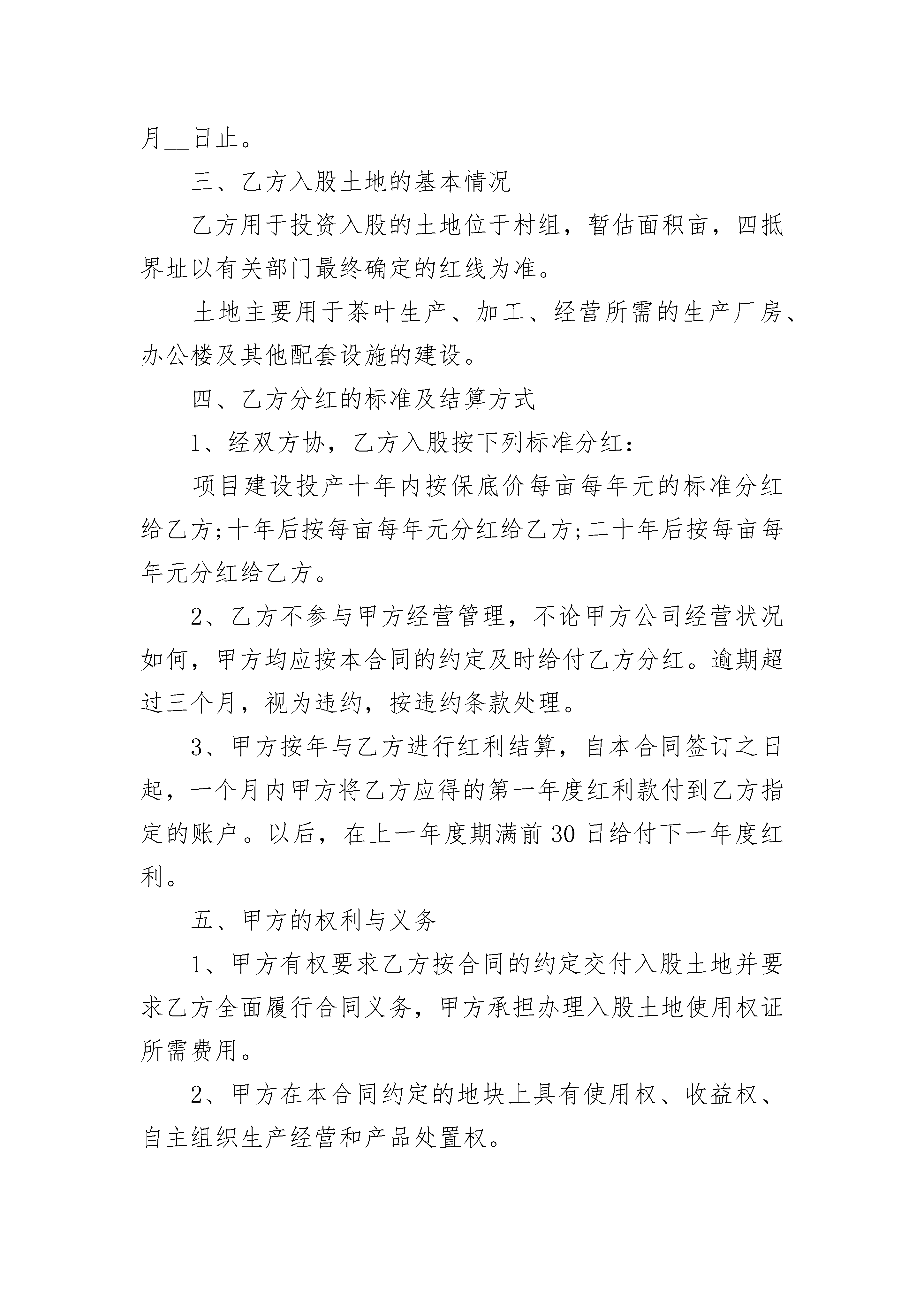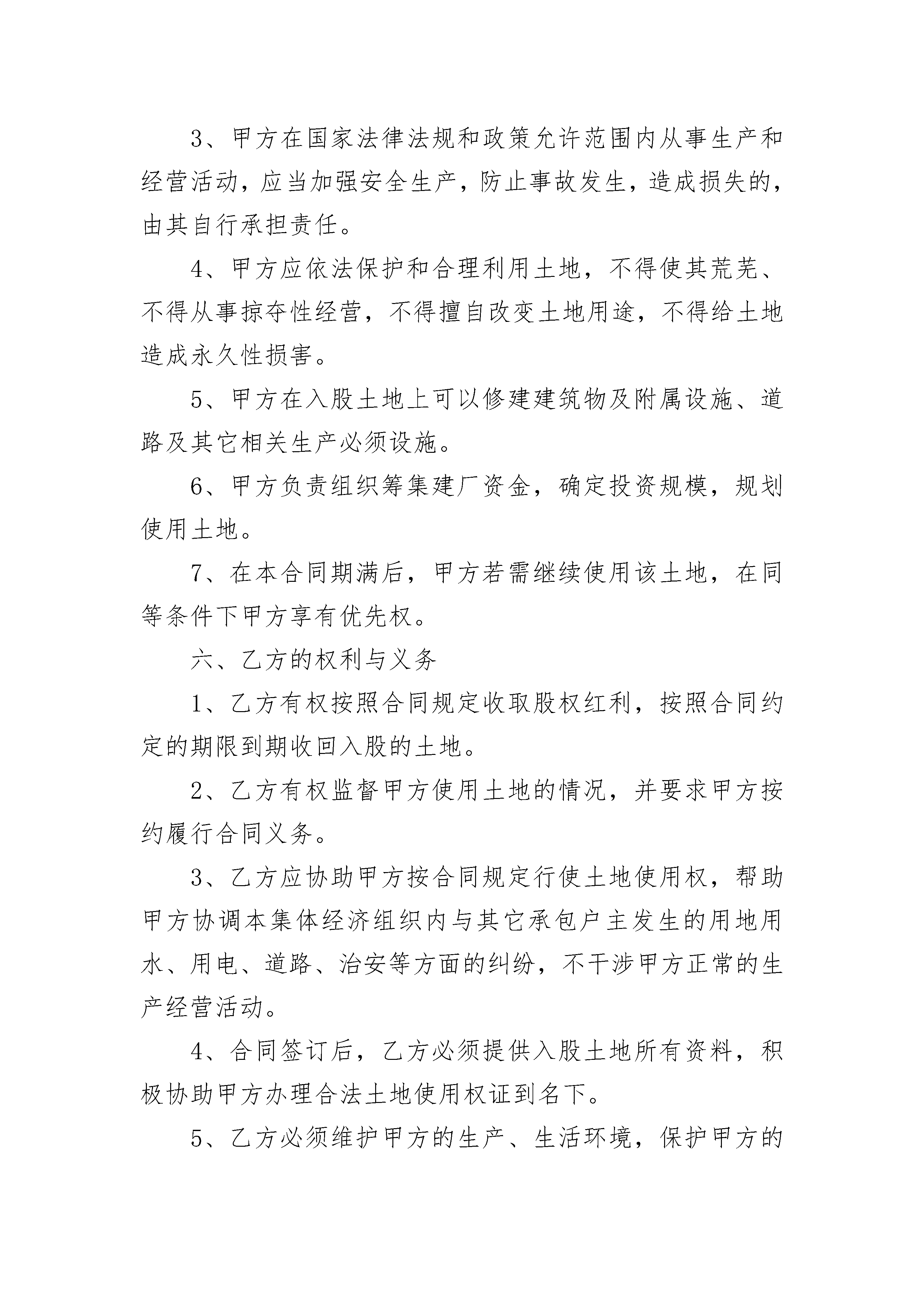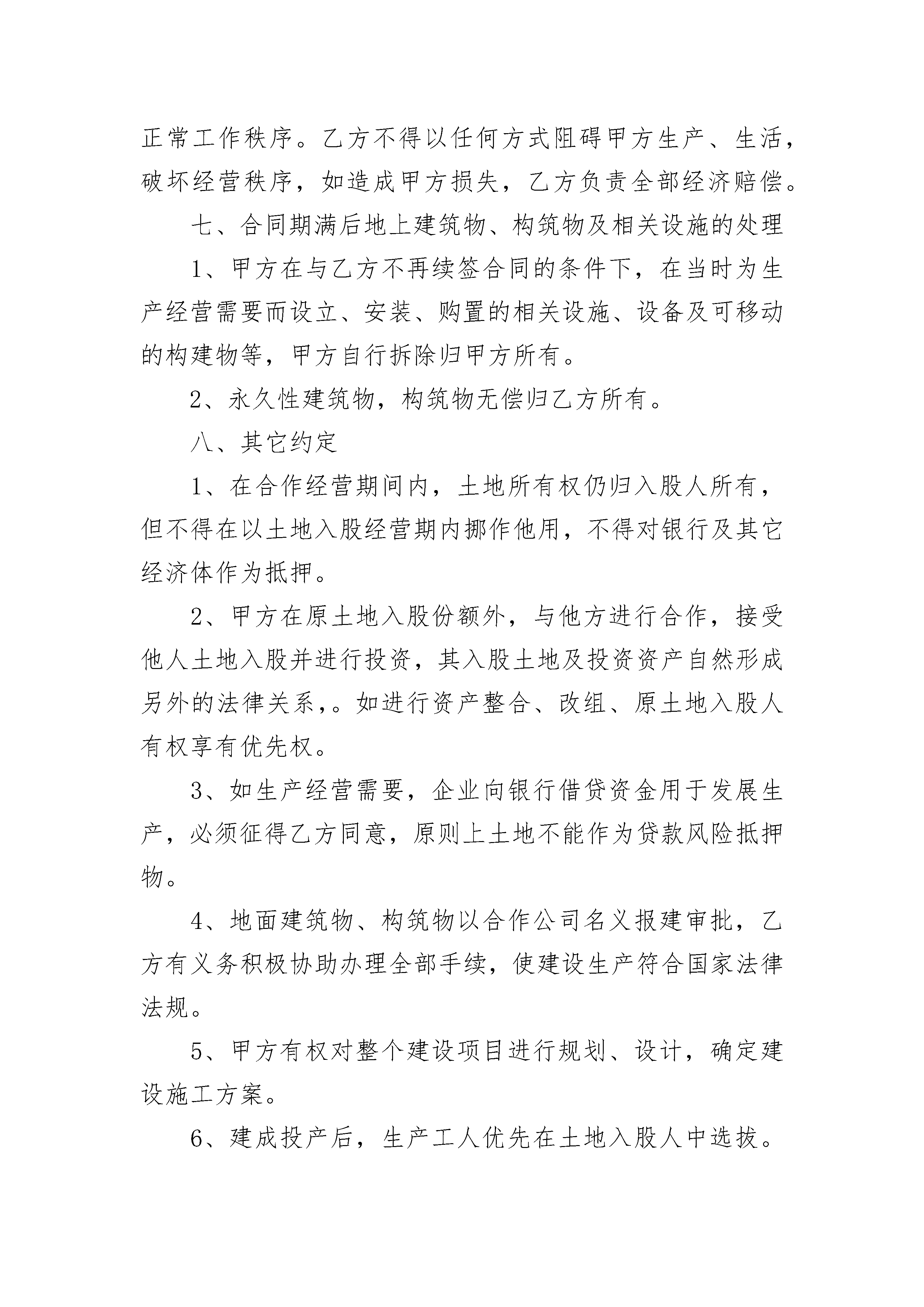集体土地折价入股合作协议书集体土地折价入股合作协议书在现在社会,很多地方都会使用到协议,协议能够成为双方当事人的合法依据。那么相关的协议到底怎么写呢?以下是小编帮大家整理的集体土地折价入股合作协议书,供大家参考借鉴,希望可以帮助到有需要的朋友。集体土地折价入股合作协议书1甲方:地址:电话:乙方:地址:电话:甲方系_______饭店的经营者,乙方系具有高级专业技能的厨师。为_____乙方作好本职工作,为饭店创造更大的经济效益,甲方决定将投资权益的部分让与给乙方,现就双方合作事宜达成如下协议:一、合作内容甲方