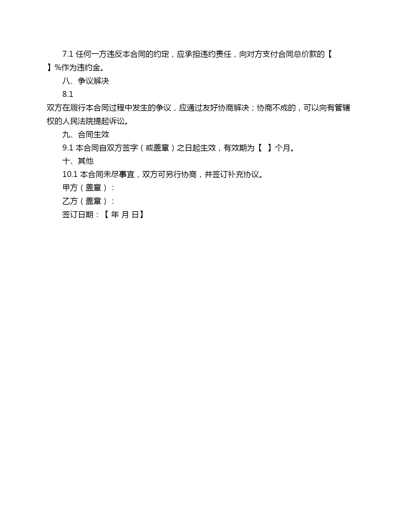 广告采购材料合同范本甲方(采购方):__________乙方(供应商):__________合同编号:__________鉴于甲方委托乙方提供广告材料,双方为明确双方的权利、义务和责任,经友好协商,特订立本合同,以便共同遵守。第一条合同标的(1)广告设计、制作;(2)广告宣传品的印刷、制作;(3)广告设备的租赁、安装;(4)其他与广告相关的材料及服务。1.2乙方应按照甲方的要求,提供符合国家法律法规、行业标准及甲方要求的广告材料。第二条质量要求2.1乙方提供的广告材料应保证质量,符合甲方的要求,不得存在任