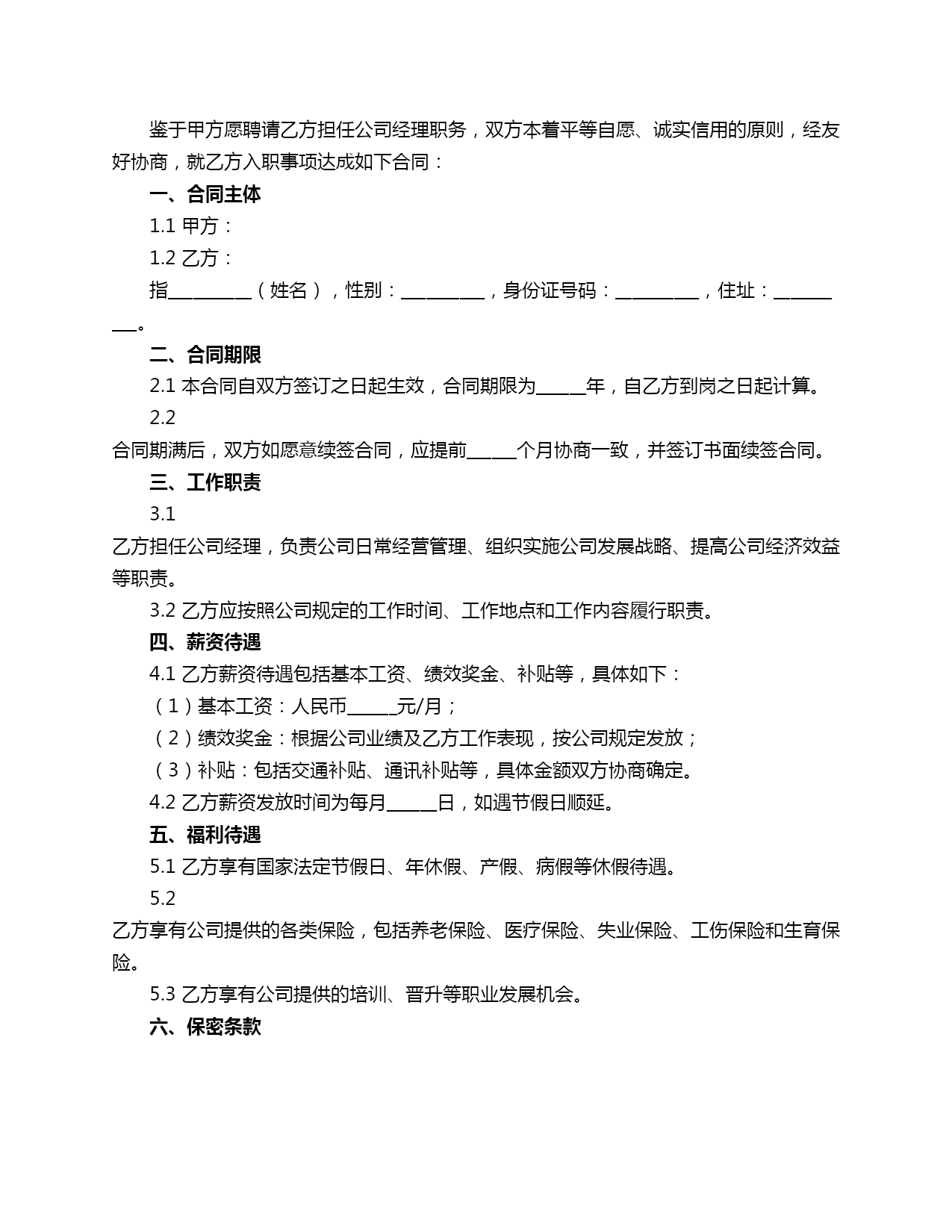 经理入职合同范本.doc