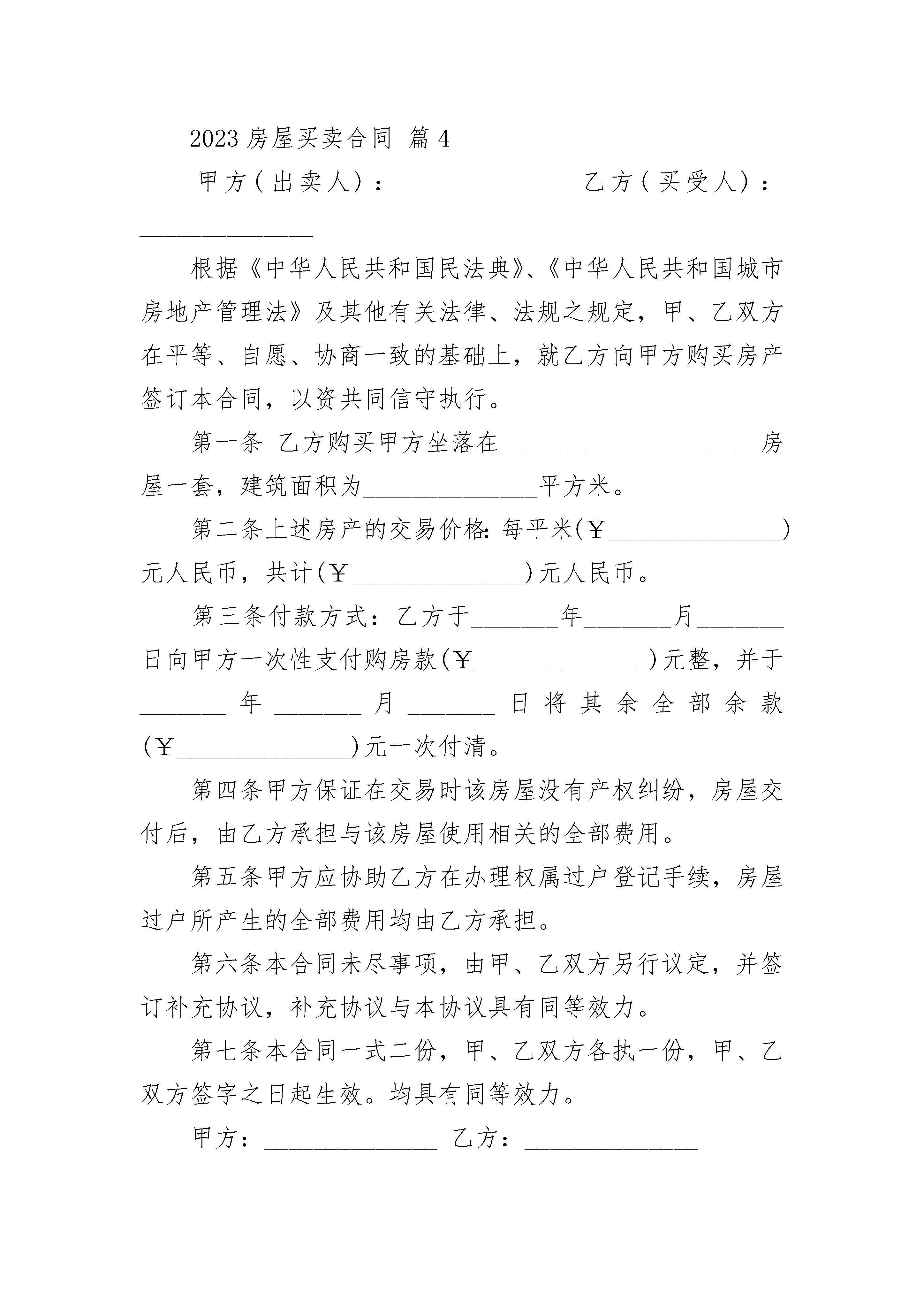 2023年农村房屋买卖合同 房屋买卖合同大全.docx