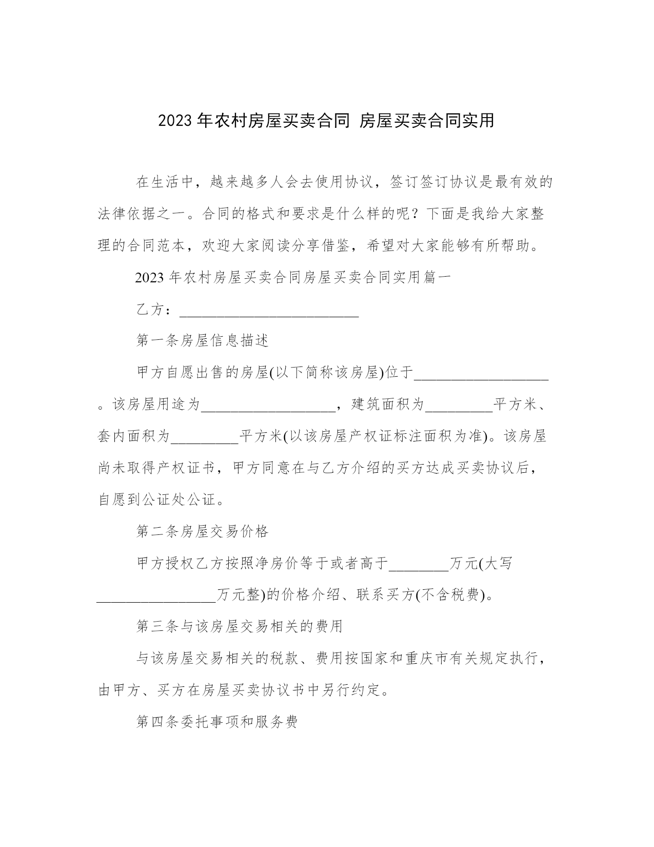 2023年农村房屋买卖合同 房屋买卖合同实用.docx
