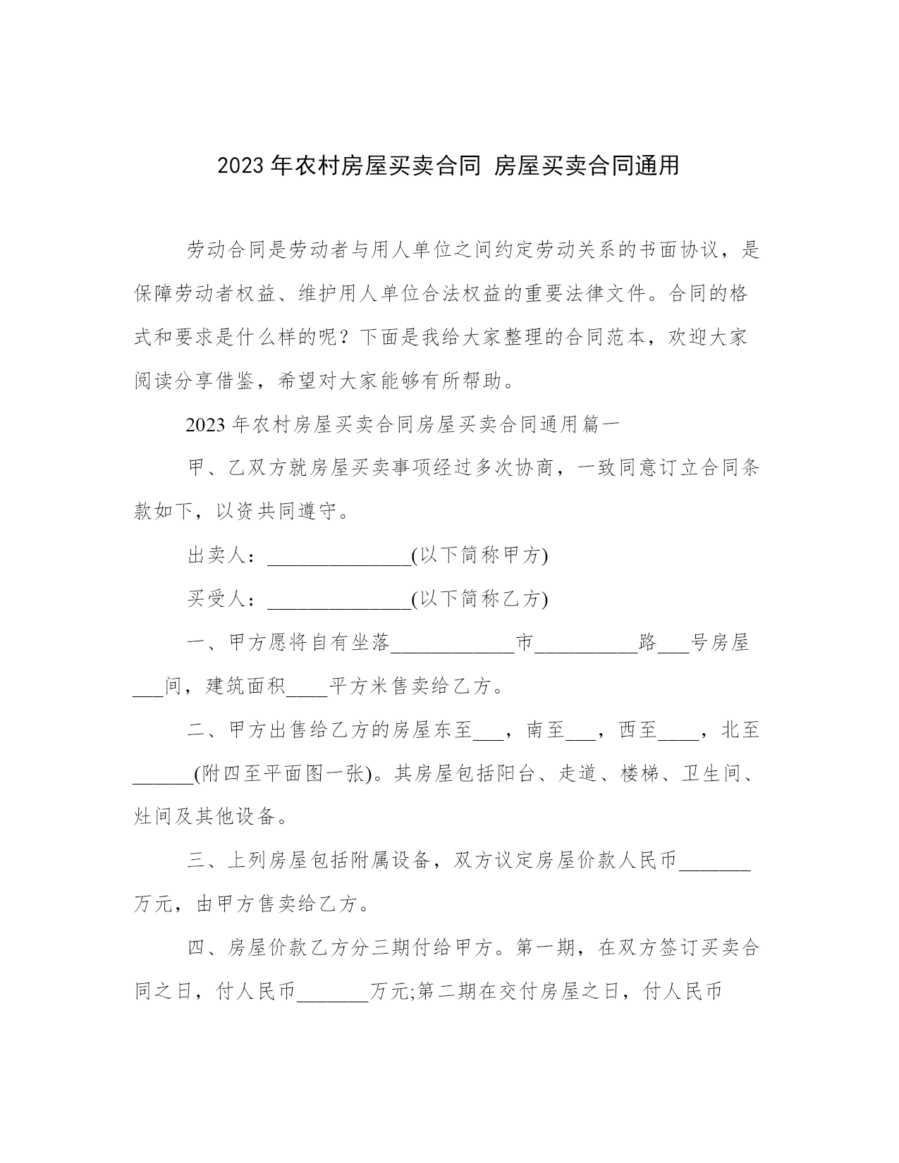 2023年农村房屋买卖合同 房屋买卖合同通用.docx