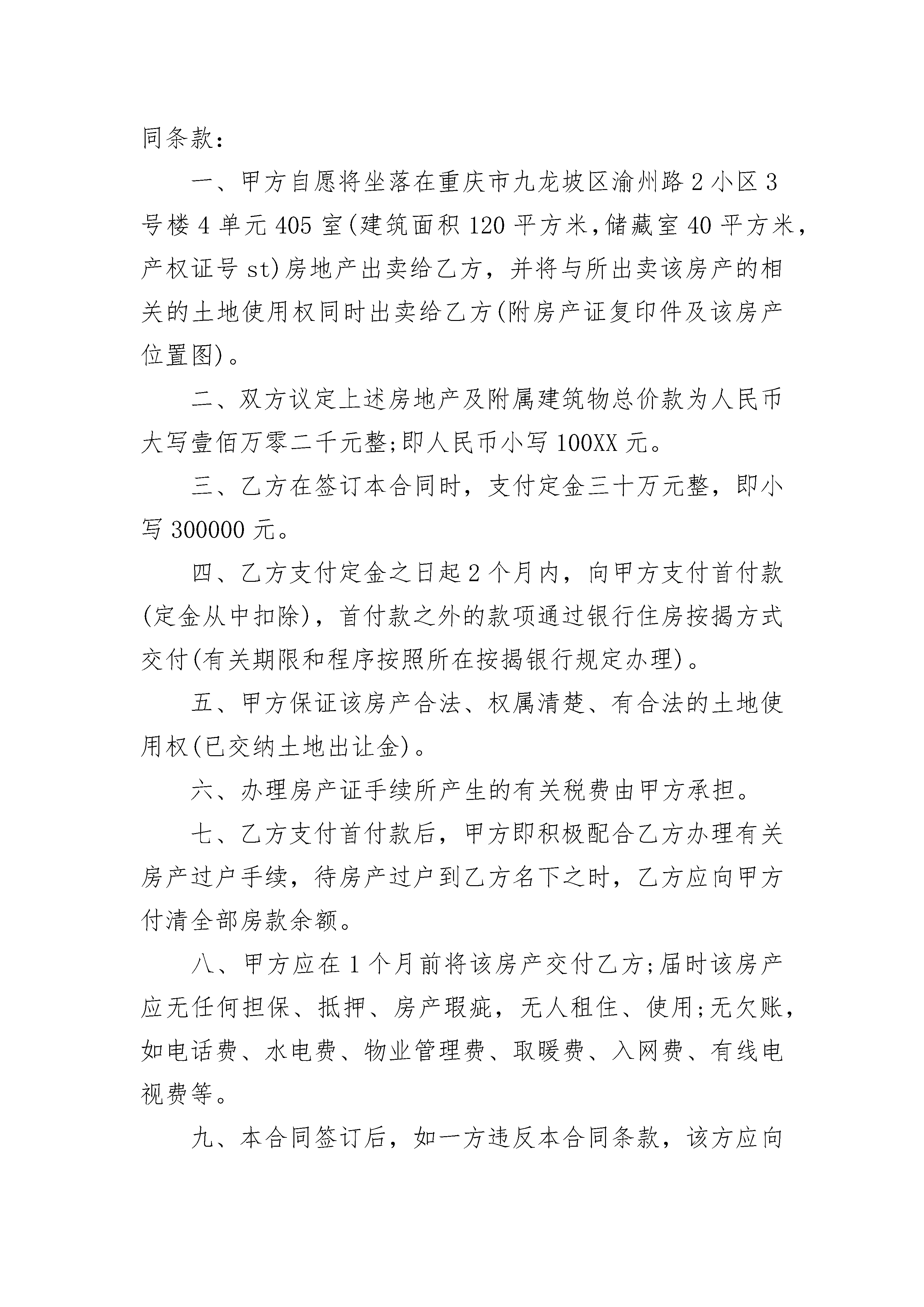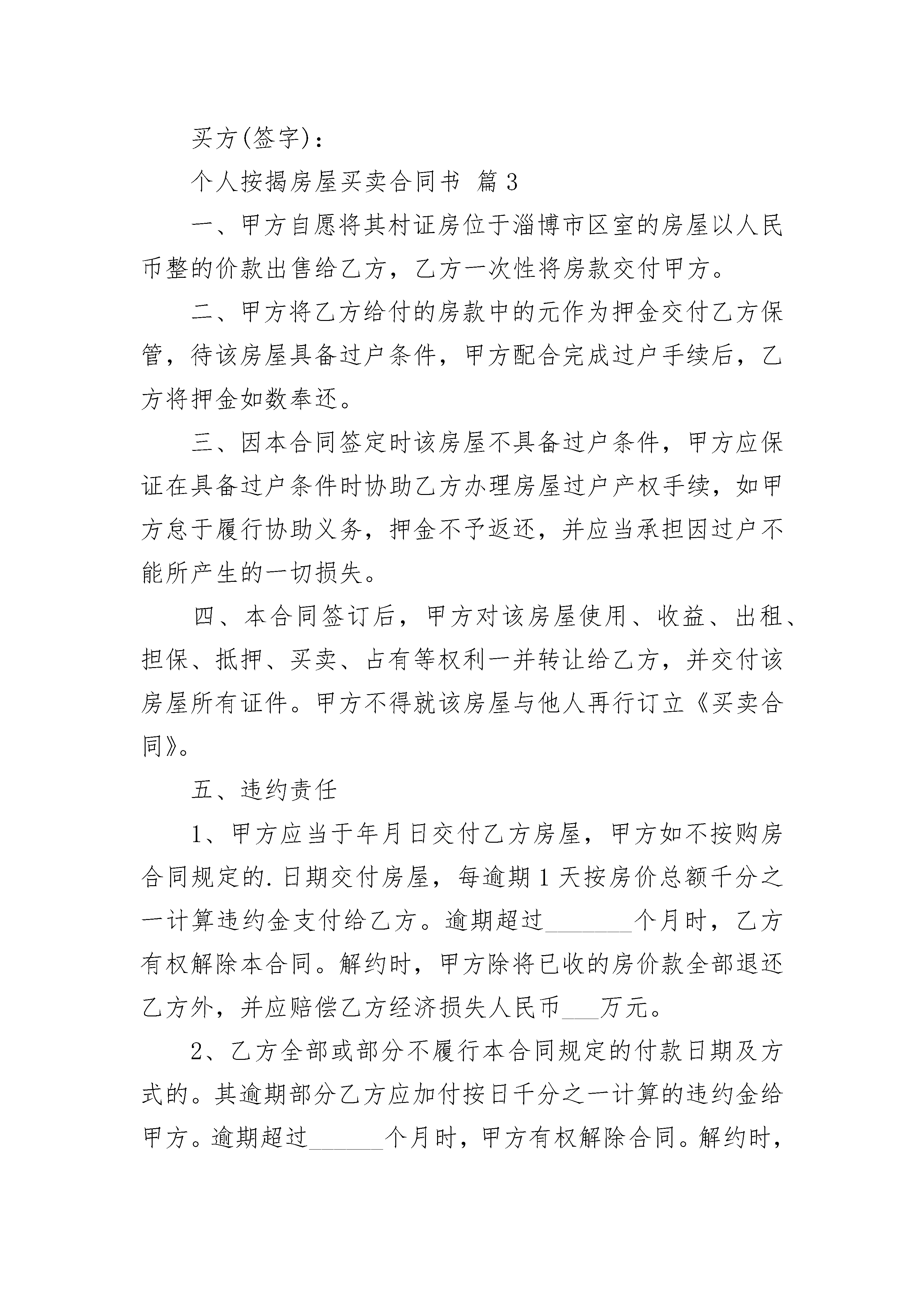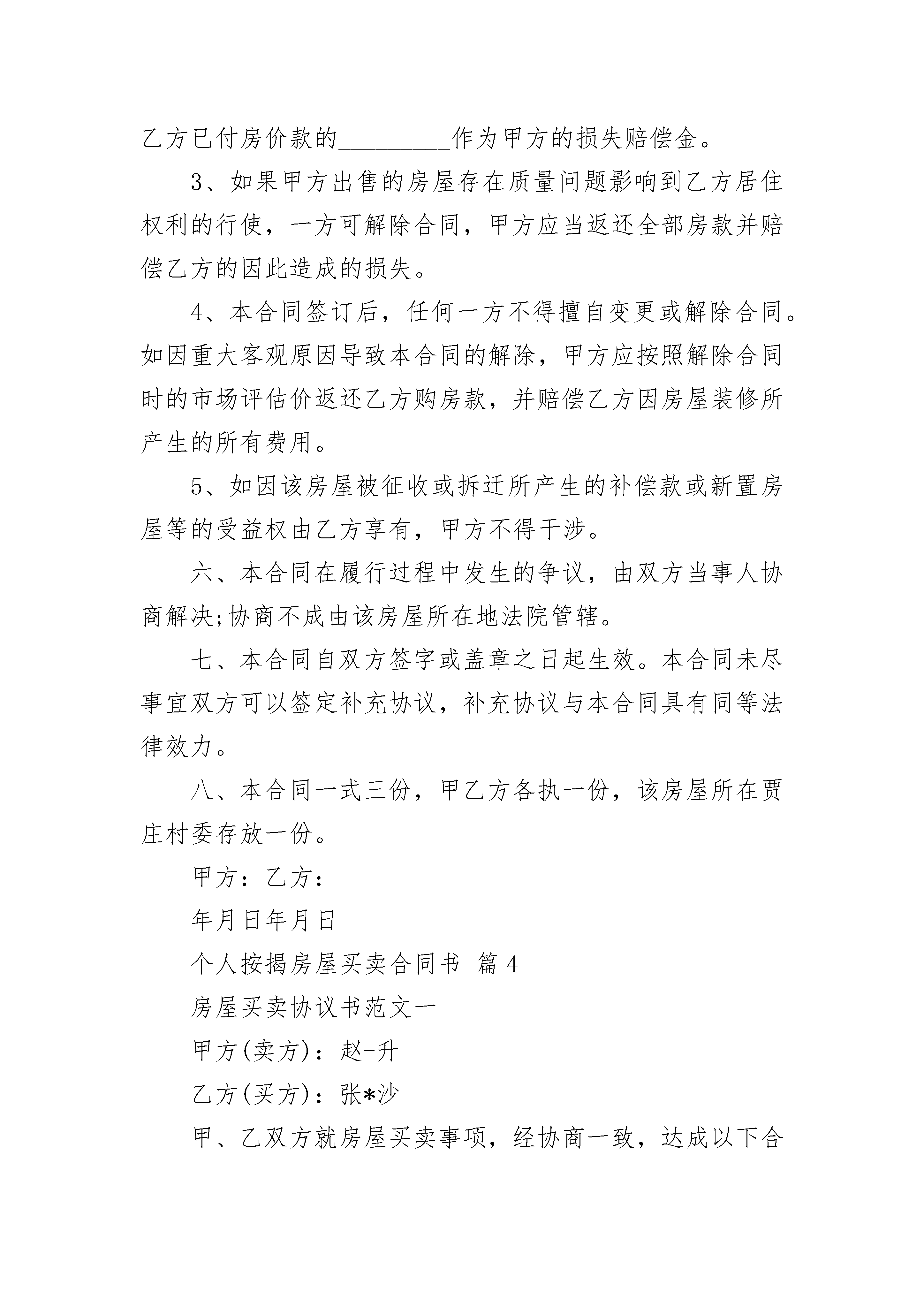 个人按揭房屋买卖合同书个人按揭房屋买卖合同书(通用23篇)个人按揭房屋买卖合同书篇1甲方(出卖人):身份证号:乙方(买受人):身份证号:根据《民法典》、《中华人民共和国城市房地产管理法》及其他有关法律、法规之规定,甲、乙双方在平等、自愿、协商一致的基础上,就乙方向甲方购买私有住房,达成如下协议:注明:甲方于____年月日以按揭的方式向黑龙江开发集团有限公司够买商品房一套,总金额____元(大写:肆拾捌万捌仟壹佰零肆元整)。甲方已支付房款首付款_(大写:_)。剩余_元(大写:_),向中国建设银行股份有限
