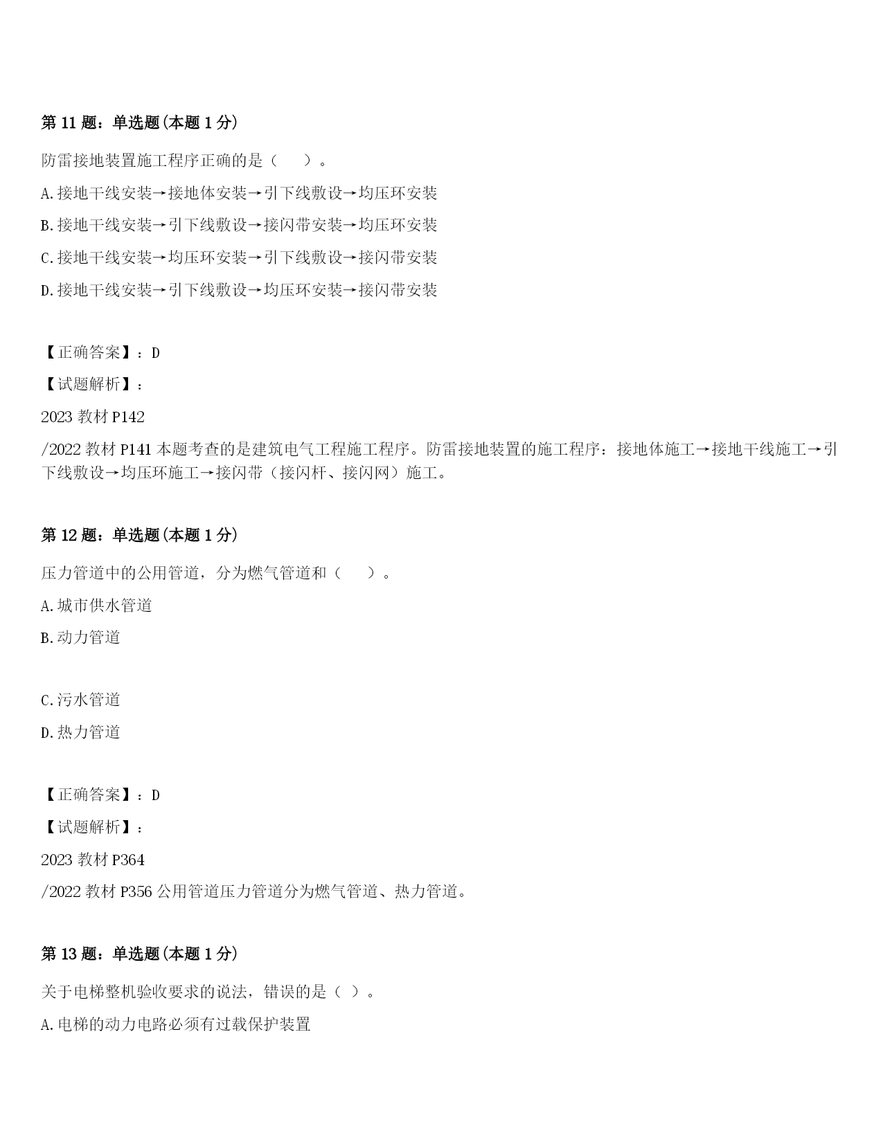 2024年咸宁市通山县二级建造师考试《机电工程管理与实务》高分冲刺试卷及答案第1题:单选题(本题1分)建设单位申请消防验收应提供的材料不包括()。A.消防验收申报表B.涉及消防的工程自检记录C.工程竣工验收报告D.涉及消防的建设工程竣工图纸【正确答案】:B【试题解析】:本题考查的是特殊建设工程消防验收条件和应提交的资料。建设单位申请消防验收应当提供下列材料:(1)消防验收申报表;(2)工程竣工验收报告;(3)涉及消防的建设工程竣工图纸。第2题:单选题(本题1分)室外视频信号传输电缆线路宜选用外导体内径为(