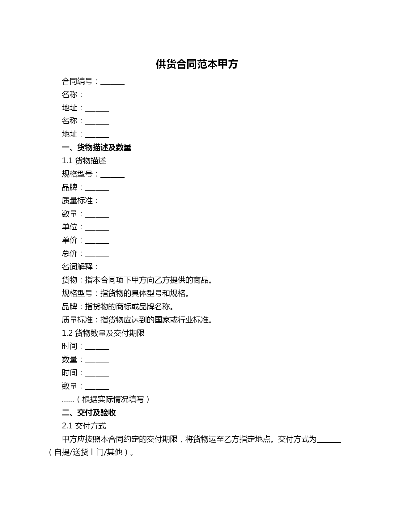 供货合同范本甲方.doc