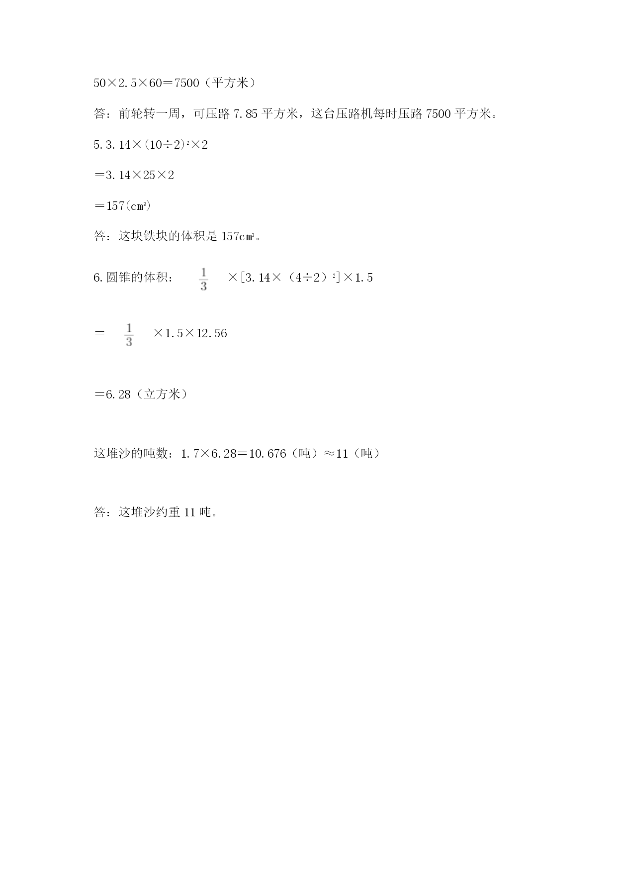 苏教版六年级下册期末真题卷一.选择题(共8题,共16分)1.表示x和y成正比例的关系式是()。A.x+y=k(一定)B.=k(一定)C.xy=k(一定)2.一个圆锥的体积是36立方米,底面积是12平方米,它的高是()米。A.9B.6C.33.一根圆柱形木料,长6分米,横截面的直径是2分米,把它锯成3个一样的小圆柱体,表面积增加()平方分米。A.9.42B.12C.12.56D.18.844.阳光书店本月营业额为1800元,若按营业额的5%缴纳营业税,该书店本月应缴纳营业税()元。A.720B.90C.17