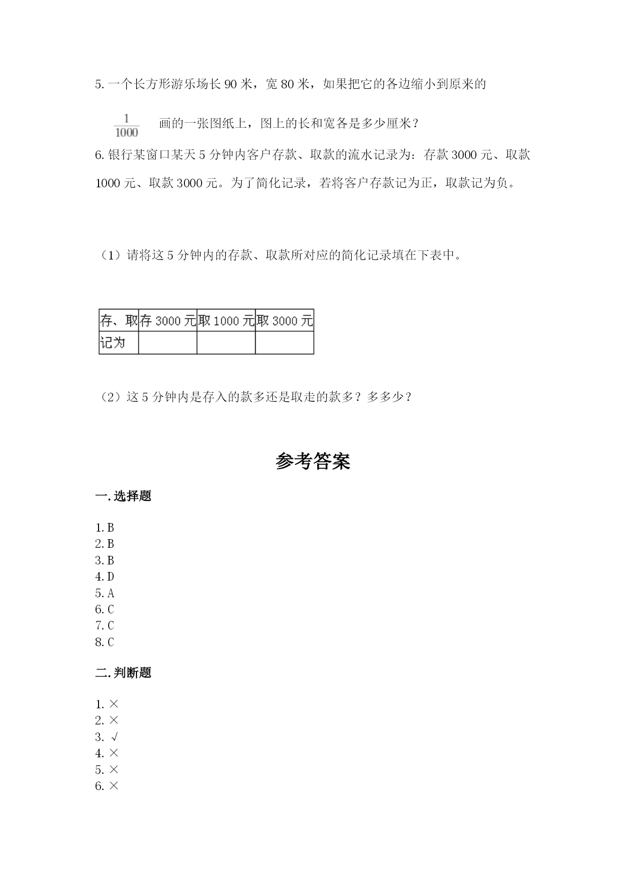 小学数学沪教版六年级下册期末测试卷一.选择题(共8题,共16分)1.一个三角形的三个内角的度数比是1∶2∶7,这个三角形是()。A.锐角三角形B.钝角三角形C.直角三角形2.如果存入3000元在存折上记作+3000元,那么取出500元应在存折上记作()元。A.500B.﹣500C.﹣30003.规定向南走500米记为+500米,那么向北走200米记为()。A.200米B.+200C.-200米D.-2004.将一个边长3cm的正方形放大成周长为36cm的正方形。实际是按()的比放大的。A.1∶3B.12∶