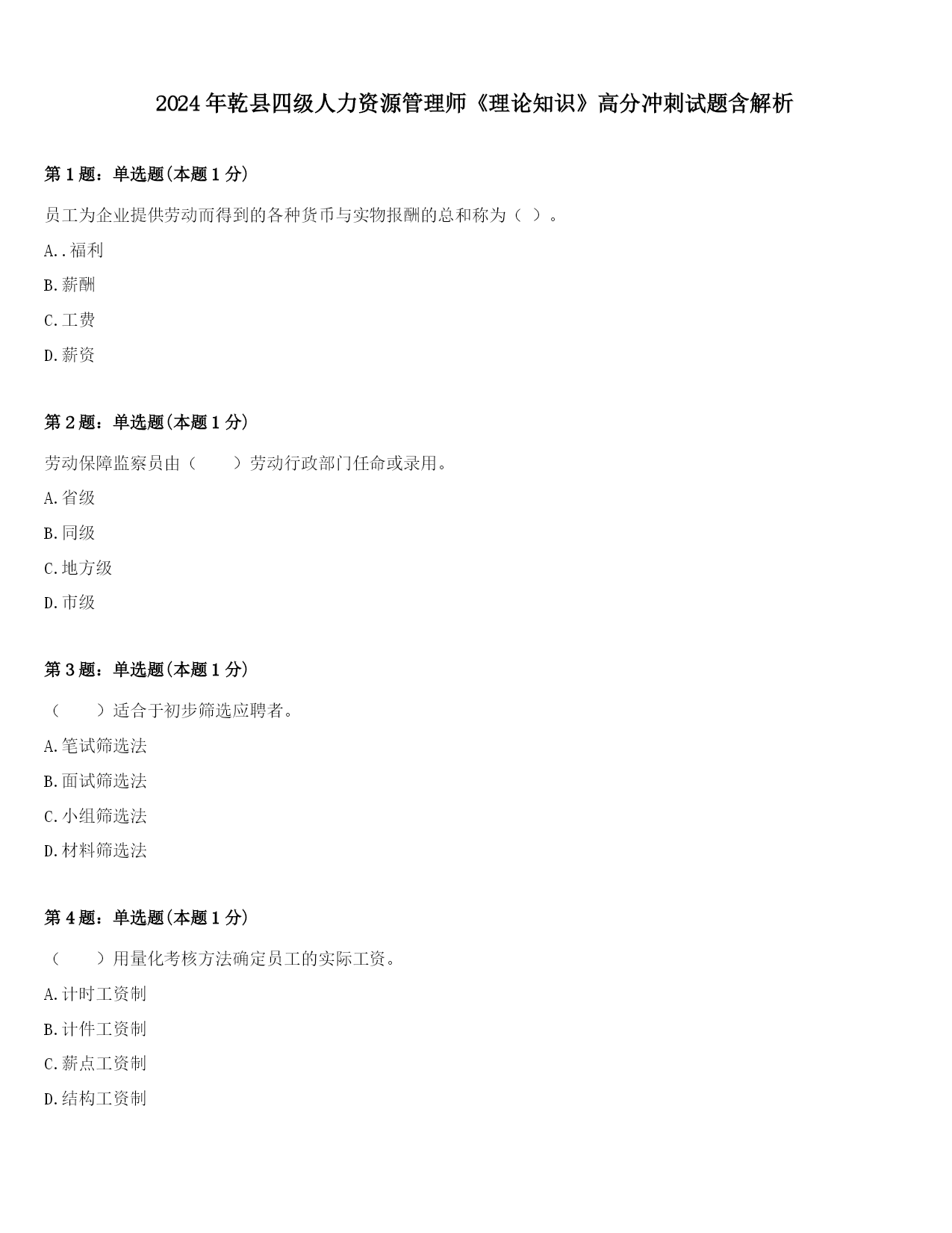 2024年乾县四级人力资源管理师《理论知识》高分冲刺试题含解析.docx