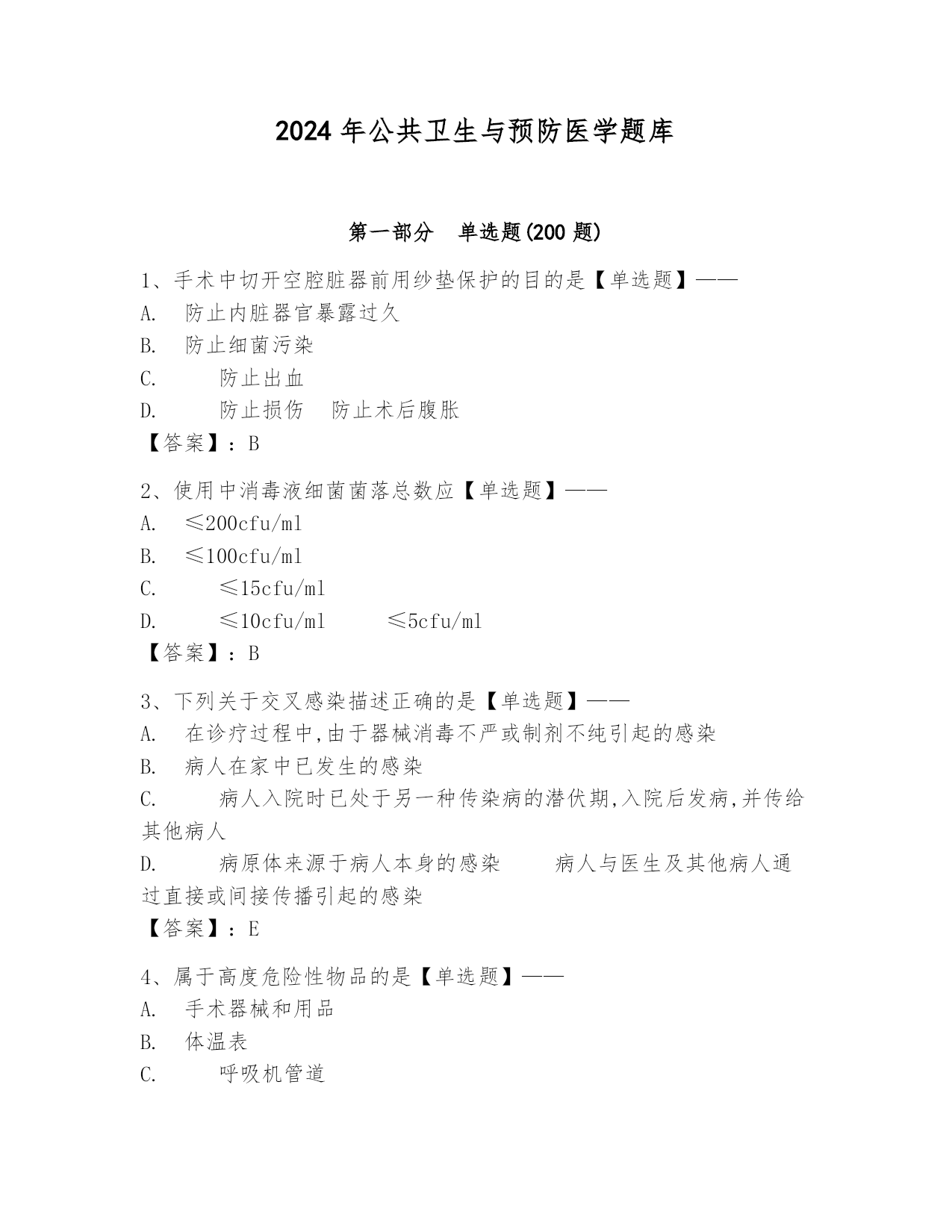 2024年公共卫生与预防医学题库附完整答案【有一套】.docx
