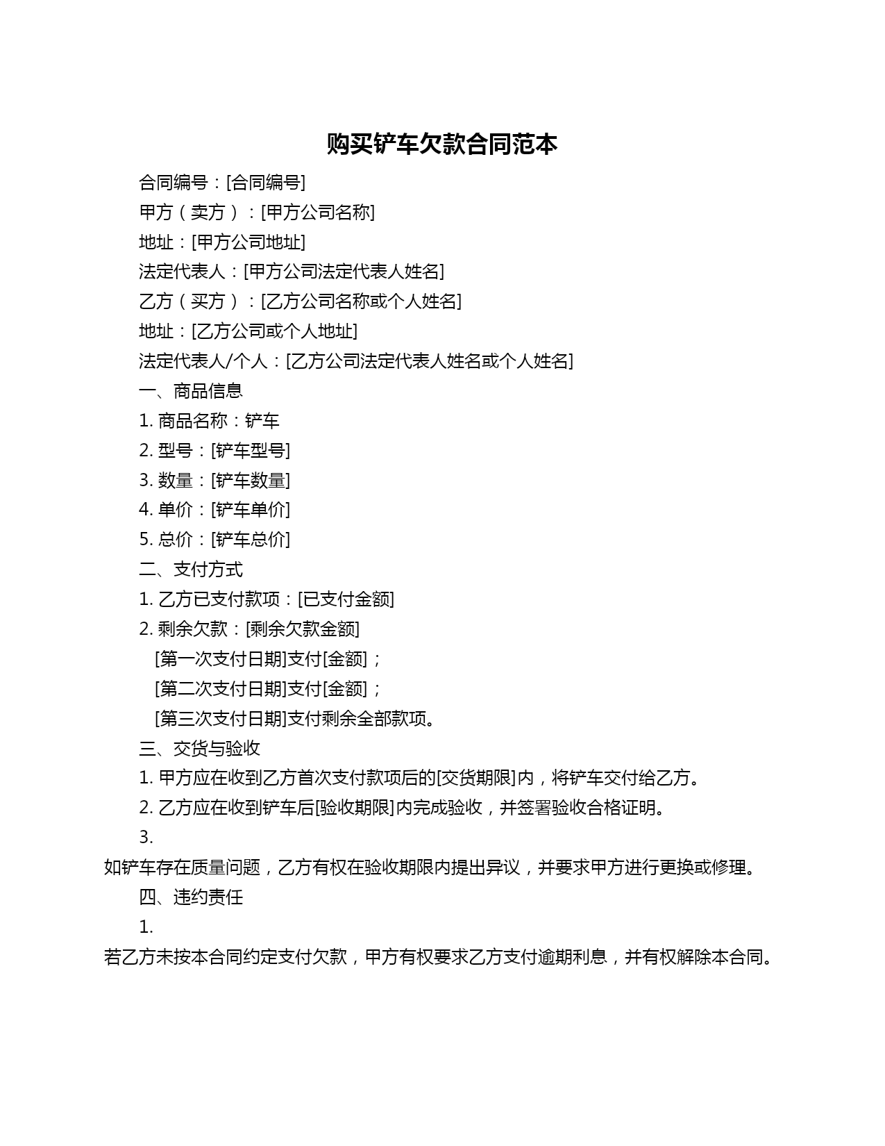 购买铲车欠款合同范本.doc