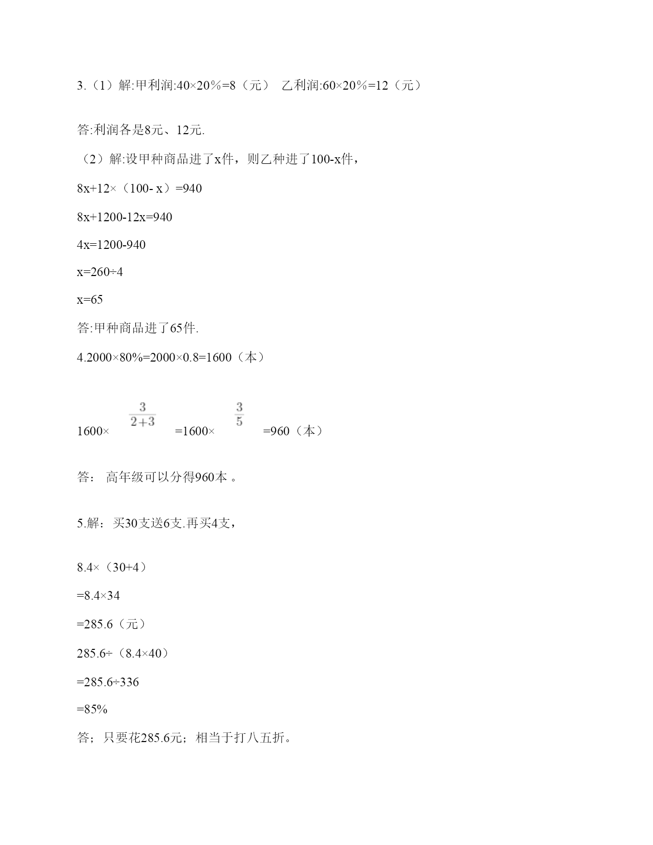 小学六年级下册数学期末考试卷一.选择题(共6题,共12分)1.某店出售的甲种糖每斤3元,乙种糖每斤5元,如果把4斤甲种糖和6斤乙种糖混合在一起以每斤4元的单价出售,所得利润比分开出售的利润()。A.大B.小C.相等D.无法比较2.某商品按原价出售每件利润为成本的50%,后来打八折出售,结果每天售出的件数比降价前增加了2.5倍,每天经营这种商品的总利润比降价前增加了百分之几?()A.40%B.70%C.120%D.140%3.学校举行自然科学知识竞赛,抢答题的评分规则是答对一题加100分,答错一题扣10分。