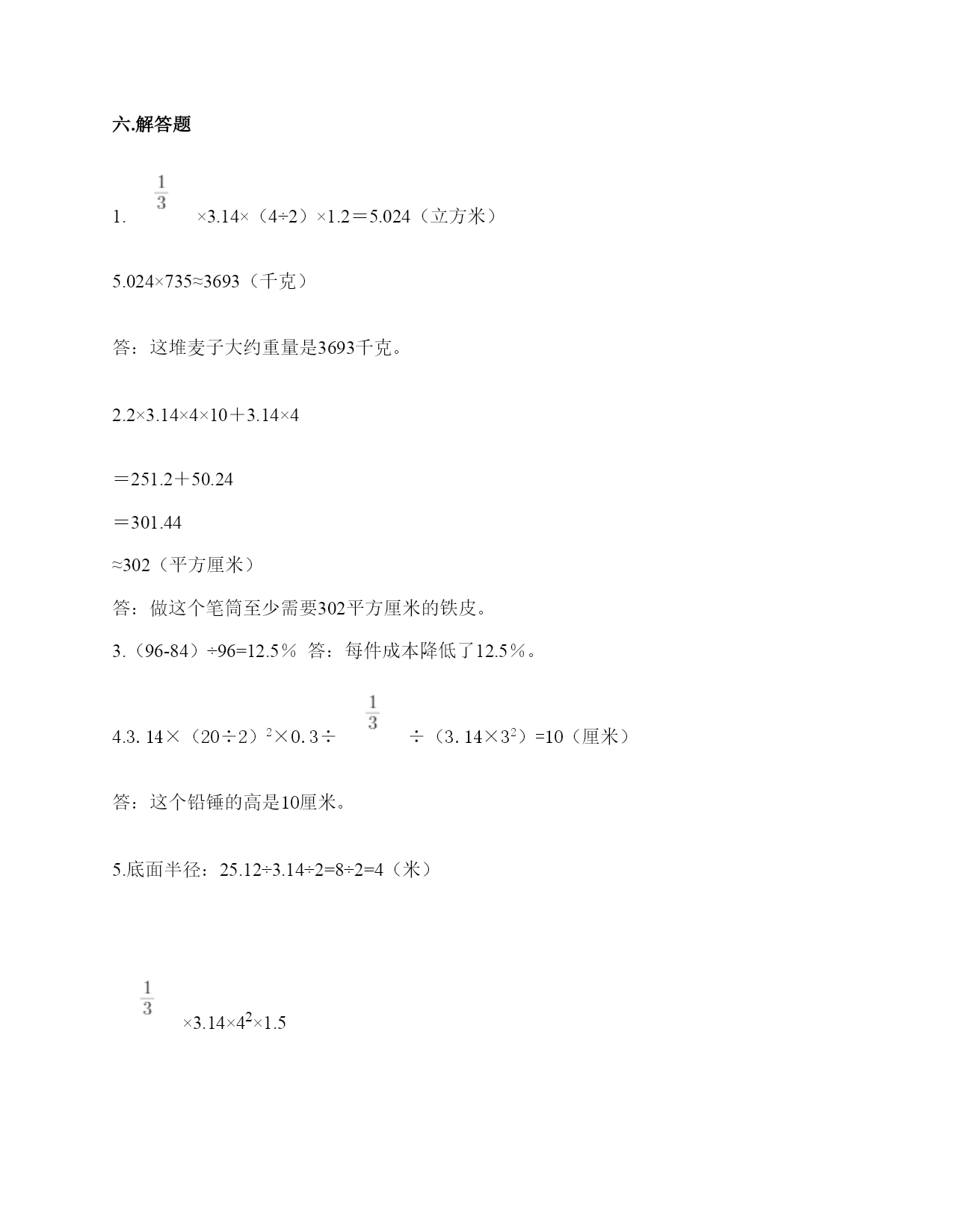 人教版六年级下册数学期末测试卷及完整答案(各地真题).doc