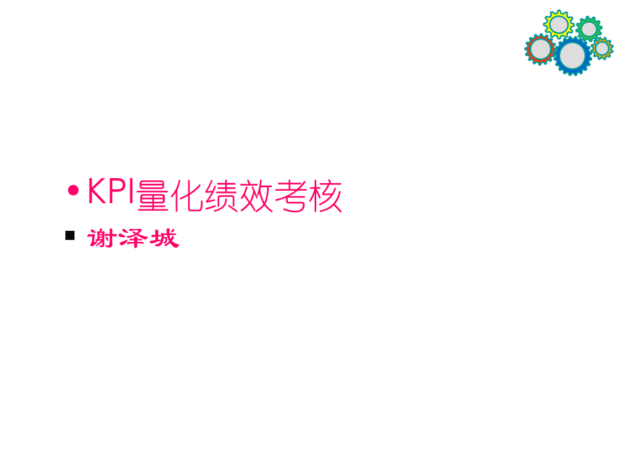 KPI量化绩效考核谢泽城怎样为本企业策划出一个以KPI为核心的,适用的目标管理系统而且这个系统:1-包含绩效目标量化考核系统2-能够不断被升级优化。7.1传统考核与量化考核的对比KPI模式包括量化绩效目标,但不等于完全量化考核传统考核内容和特点:内容工作的质和量工作态度和行为工作能力和表现工作纪律和作风特点:定性为主注重和别人比较打分或分等级凭主管的主观感觉通过增加评分人来平衡量化考核内容和特点:内容工作的结果包括效率、质、量、成本特点:量化的考核目标注重结果和目标的比较打分或分等级通过增加目标来平衡传统