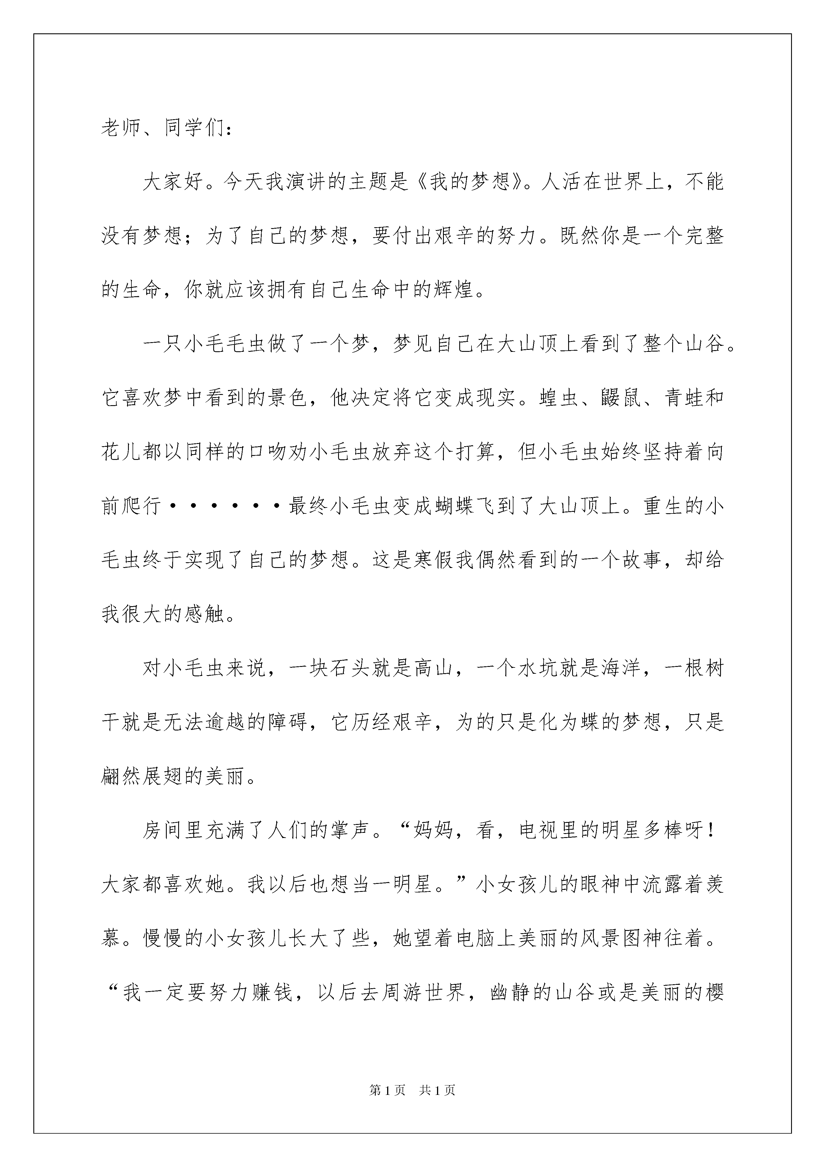 2022《我的梦想》演讲稿《我的幻想》演讲稿演讲稿以发表看法表达观点为主是为演讲而事先打算好的文稿。在生活中演讲稿应用范围愈来愈广泛来参考自己须要的演讲稿吧!以下是我帮大家整理的《我的幻想》演讲稿欢迎大家借鉴与参考希望对大家有