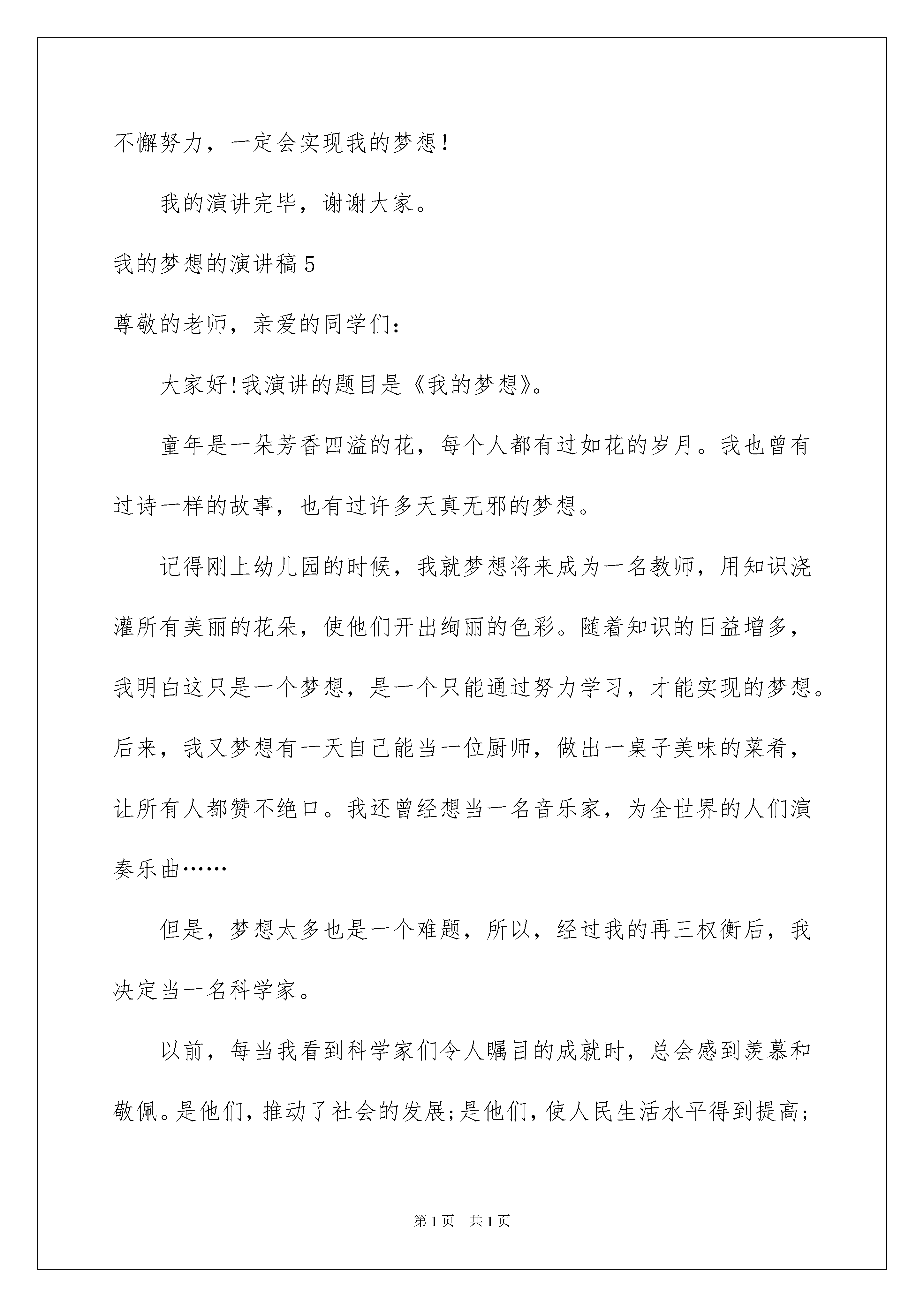 2022我的梦想的演讲稿我的梦想的演讲稿使用正确的写作思路书写演讲稿会更加事半功倍。在不断进步的社会中我们使用上演讲稿的情况与日俱增怎么写演讲稿才能避免踩雷呢?以下是我收集整理的我的梦想的演讲稿仅供参考欢迎大家阅读。我的梦想的