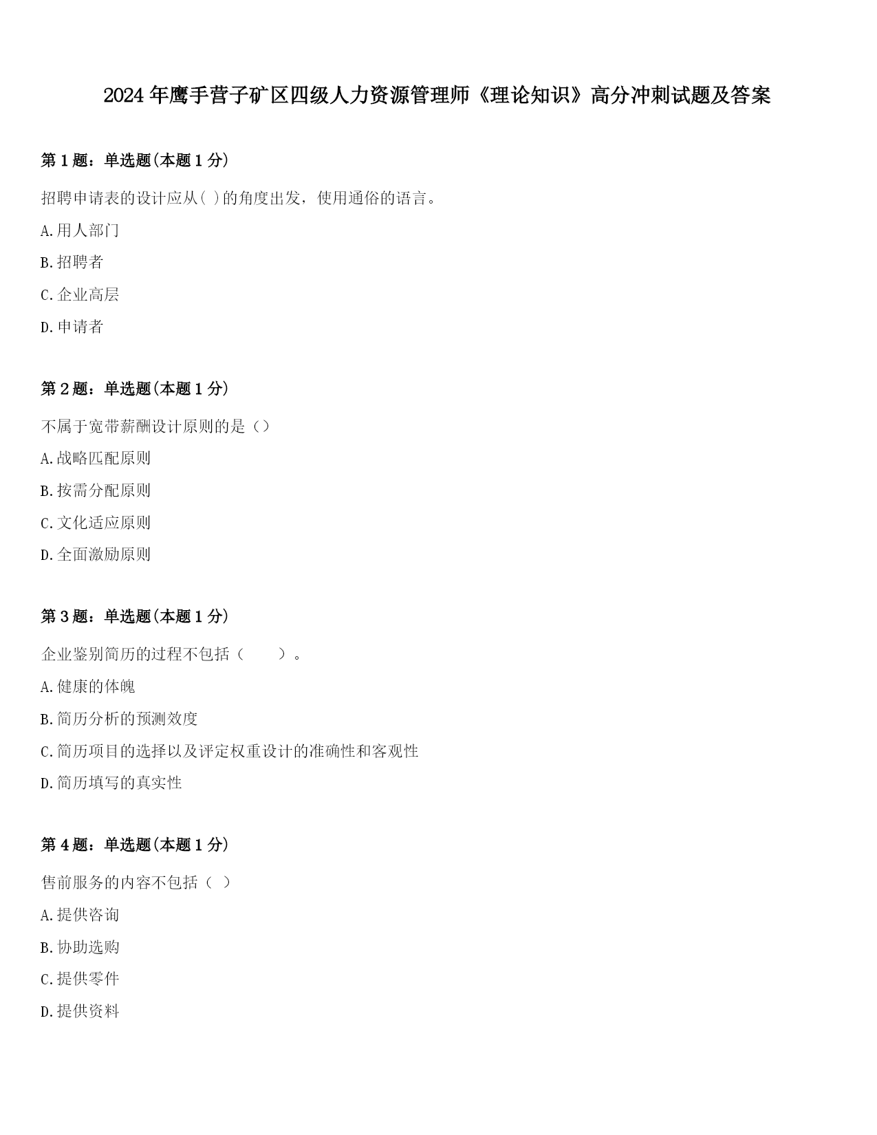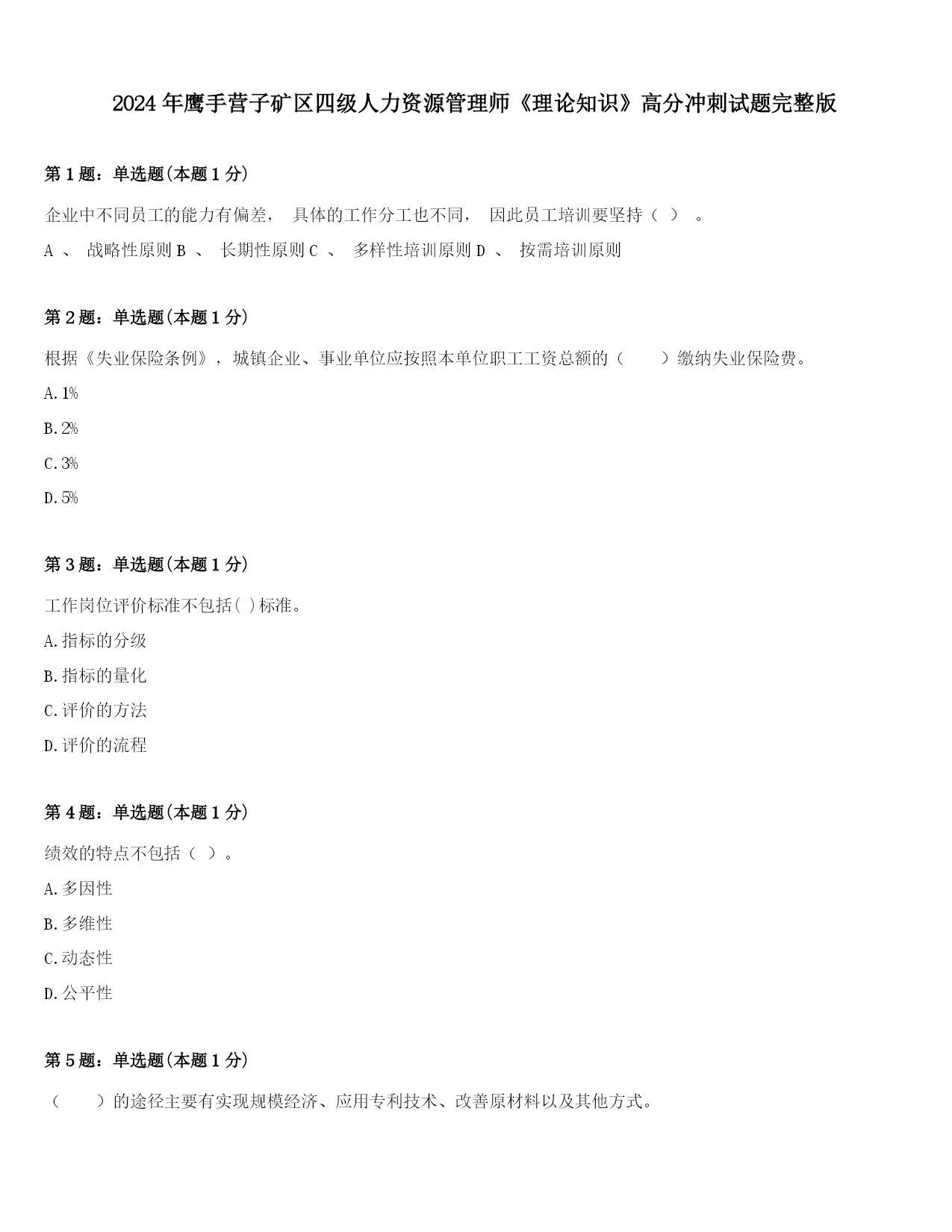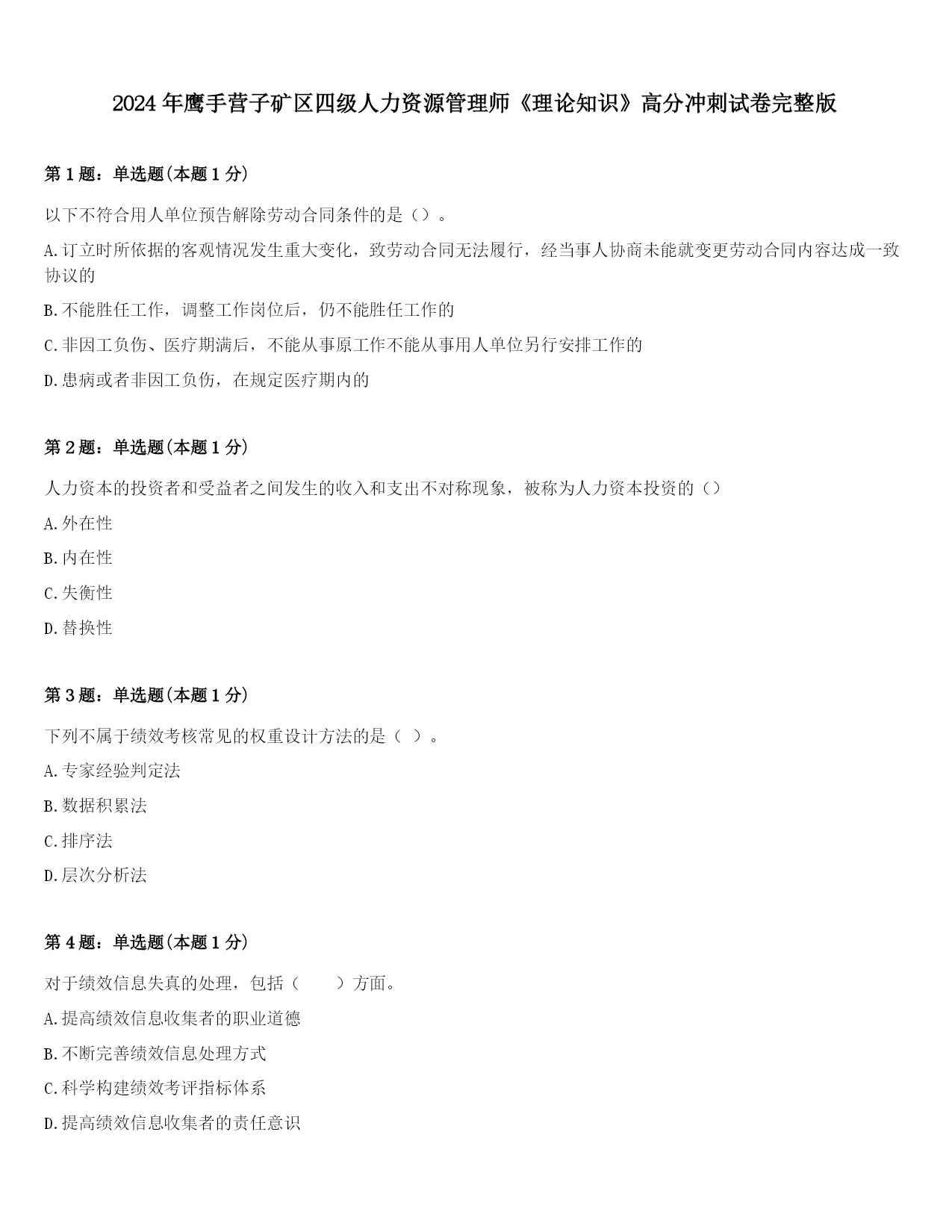 2024年鹰手营子矿区四级人力资源管理师《理论知识》高分冲刺试题完整版.docx