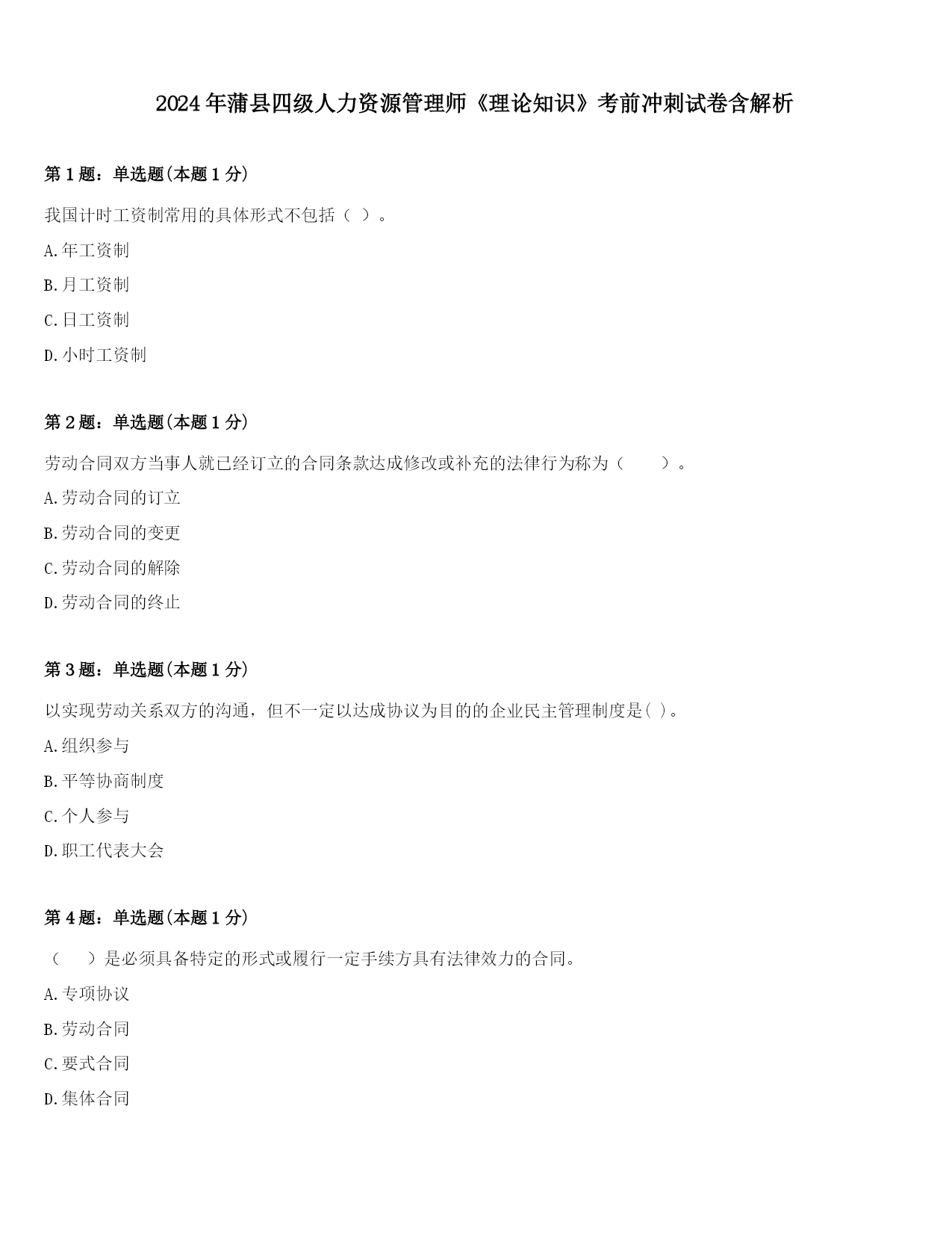 2024年蒲县四级人力资源管理师《理论知识》考前冲刺试卷含解析.docx