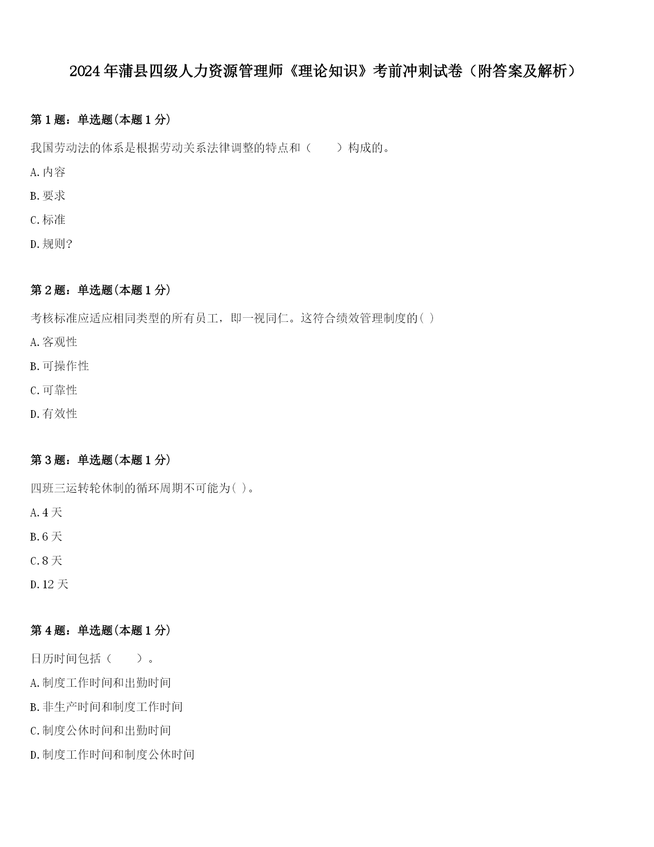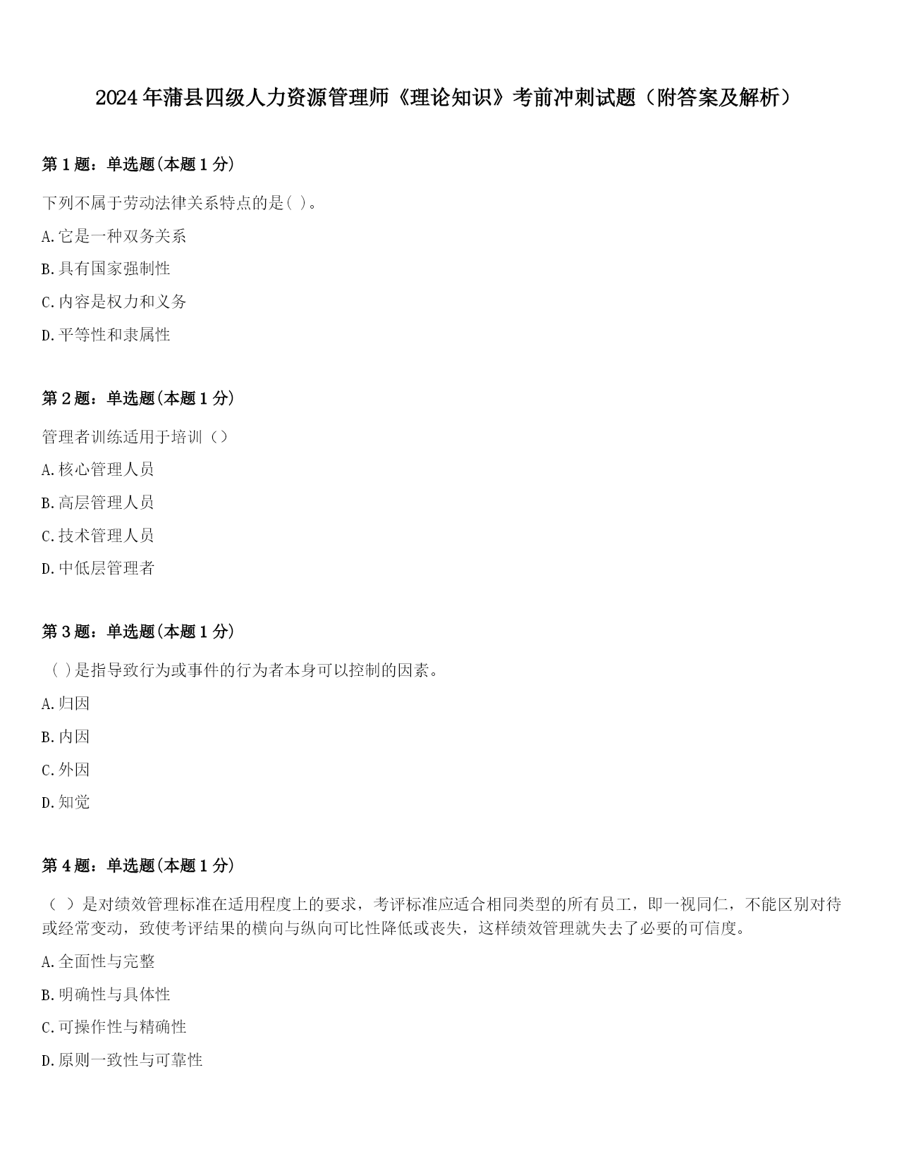 2024年蒲县四级人力资源管理师《理论知识》考前冲刺试卷及答案.docx