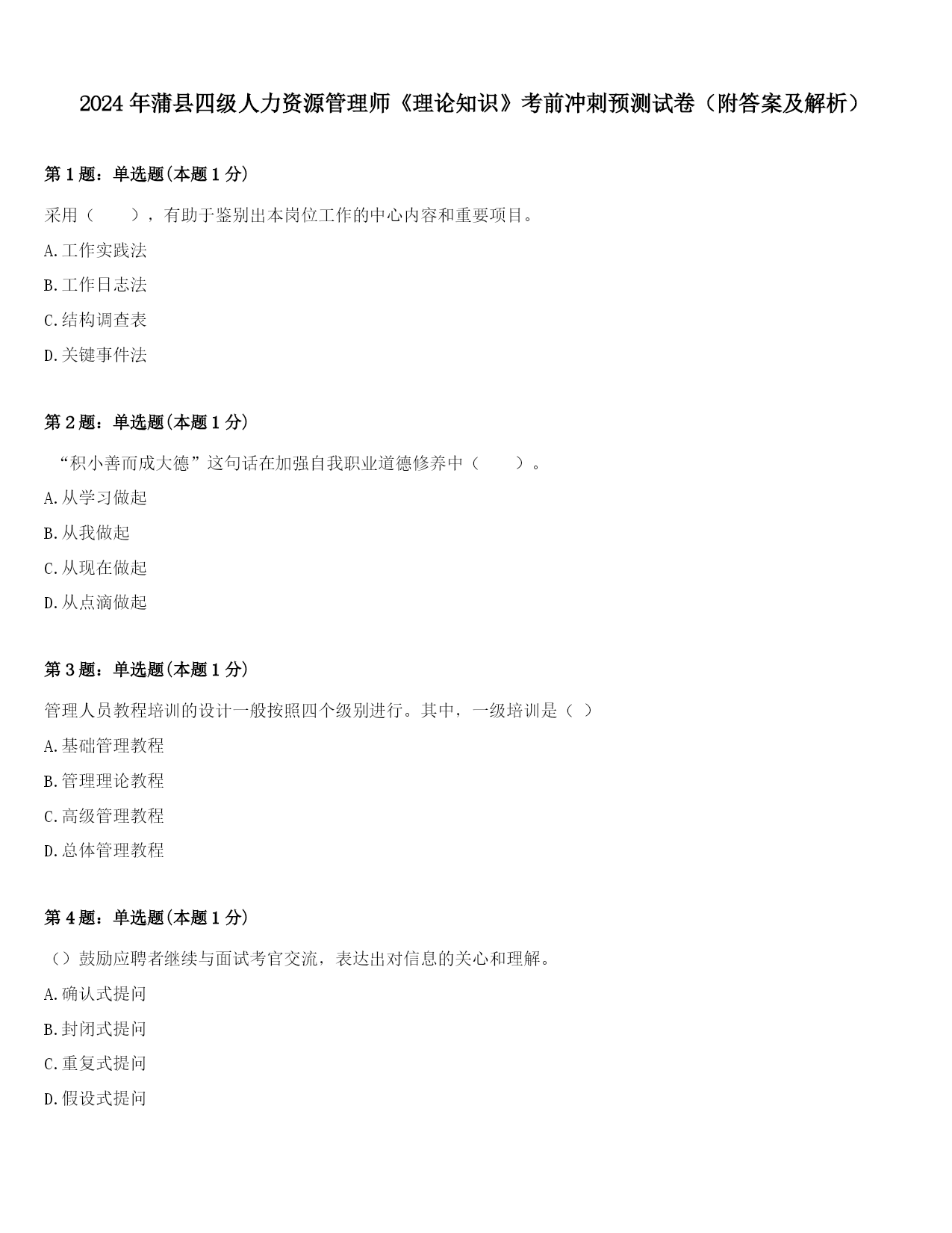2024年蒲县四级人力资源管理师《理论知识》考前冲刺试卷(附答案及解析).docx
