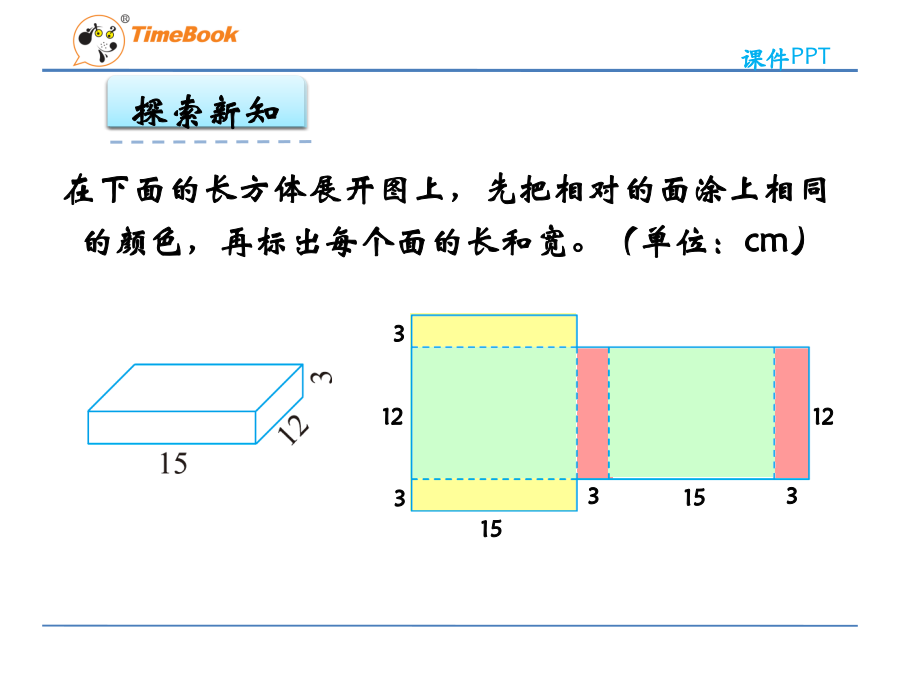 冀教版五年级数学下明确目标把一个正方体纸盒剪开,看看它的展开图1、找出每个长方体对应的展开图。