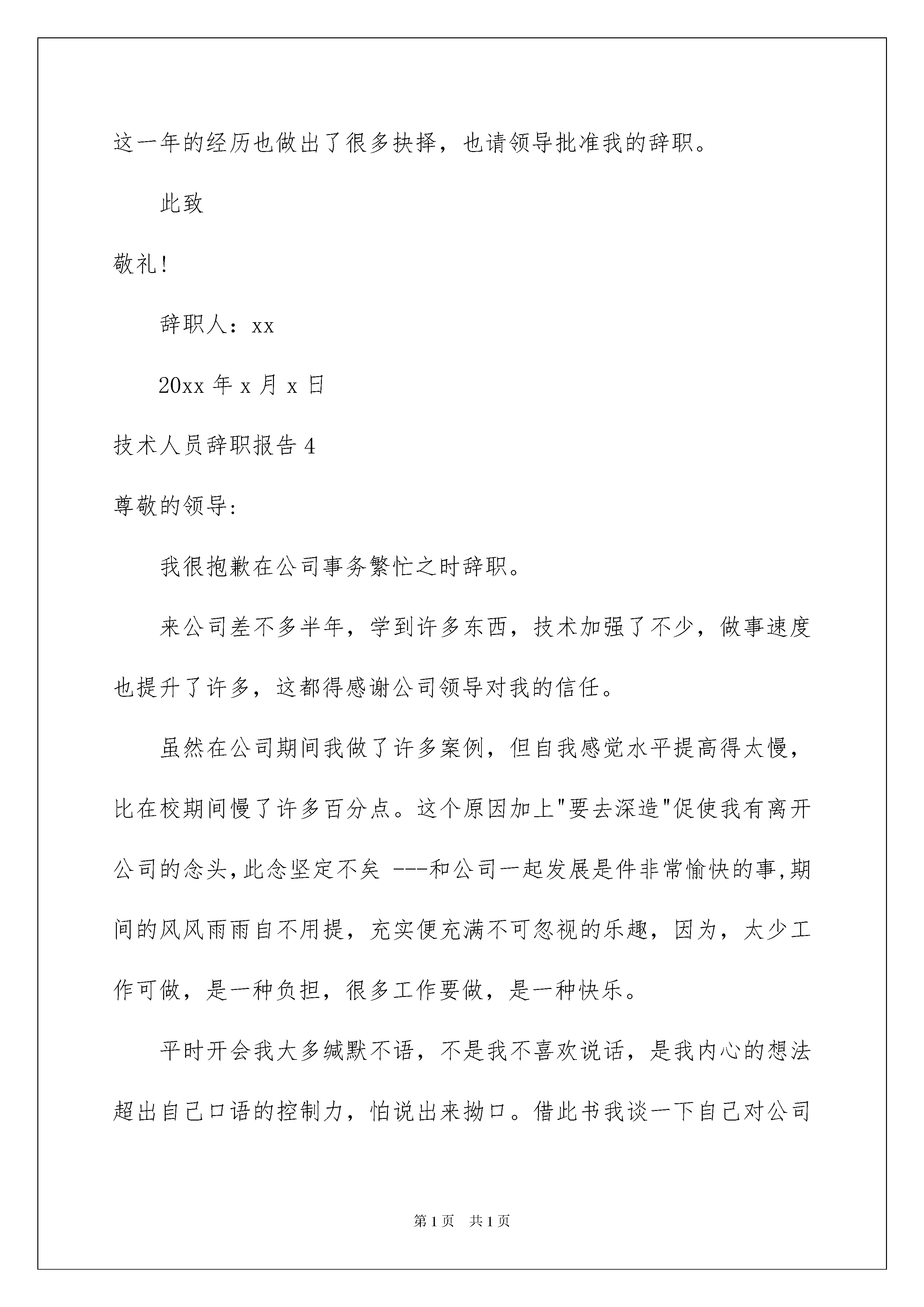 2022技术人员辞职报告技术人员辞职报告工作中有人入职自然有人辞职我们或许会因为这样或那样的缘由而选择离职这时就要静下心来好好写写辞职报告了。是不是苦于写不出正规的辞职报告呢?以下是我为大家整理的技术人员辞职报告欢迎大家共享。