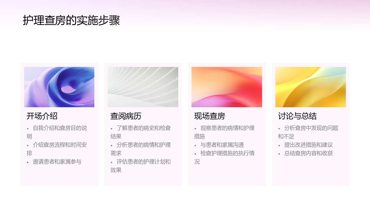护理查房内容包括0102护理查房总结03查房中的安全措施040506护理查房的未来发展