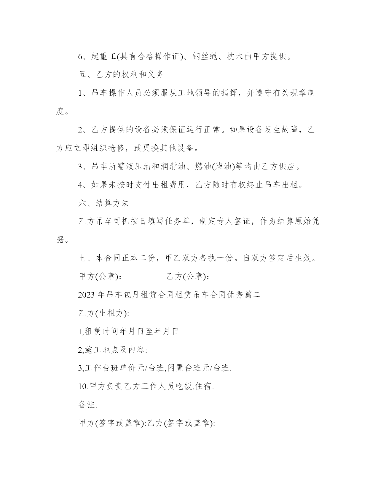 2023年吊车包月租赁合同 租赁吊车合同优秀.docx