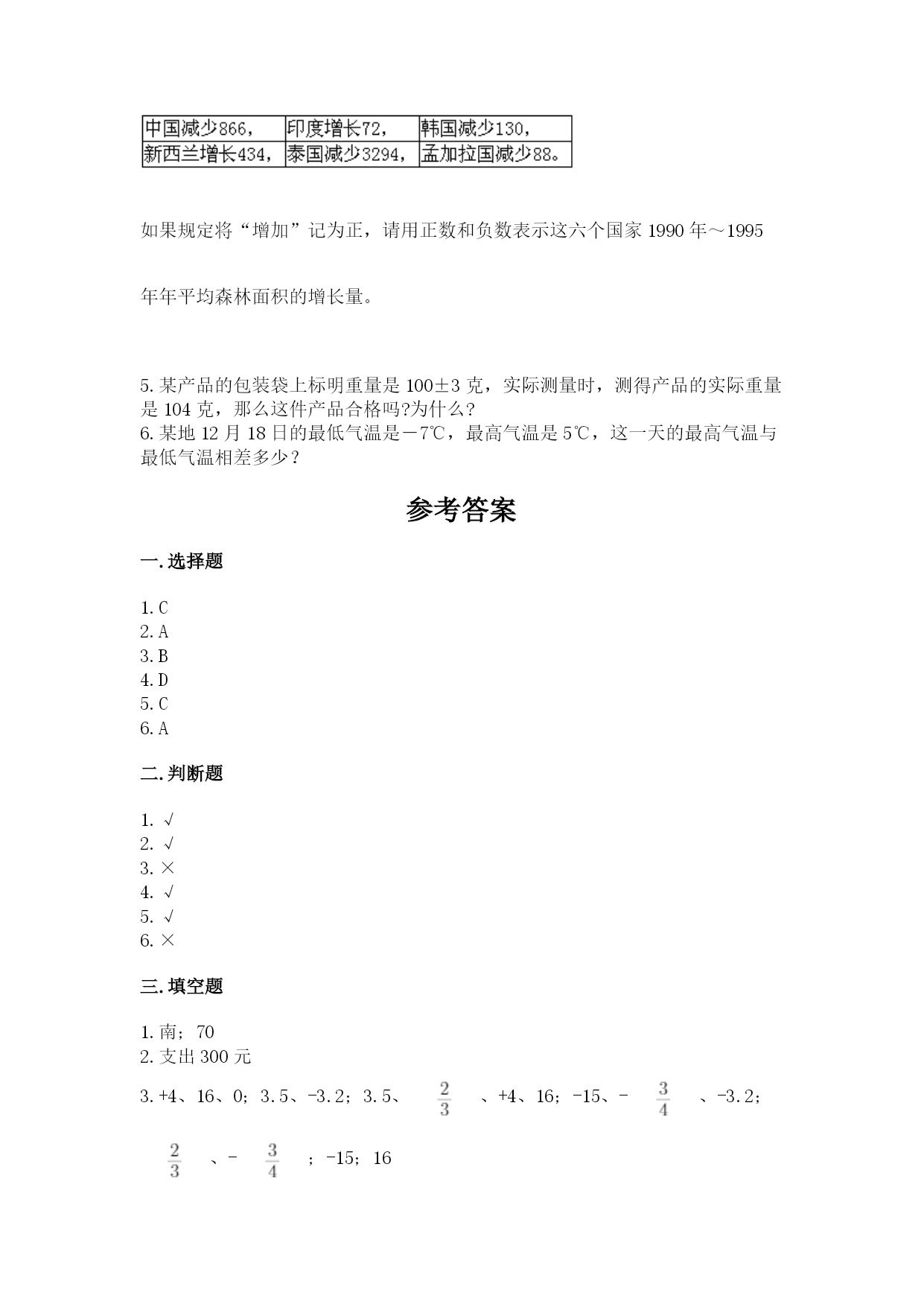 人教版六年级下册数学第一单元《负数》测试卷含答案(典型题).docx
