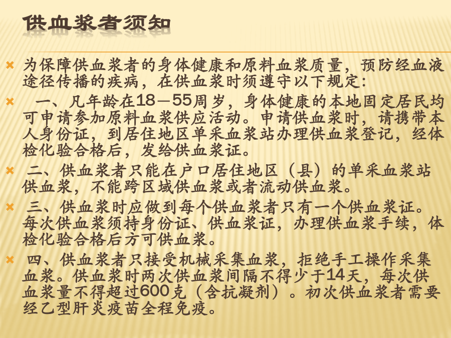 供血浆者须知卫生部办公厅关于下发供血浆者须知的通知供血浆者须知五、每次供血浆前应接受体格检查和血液检验项目