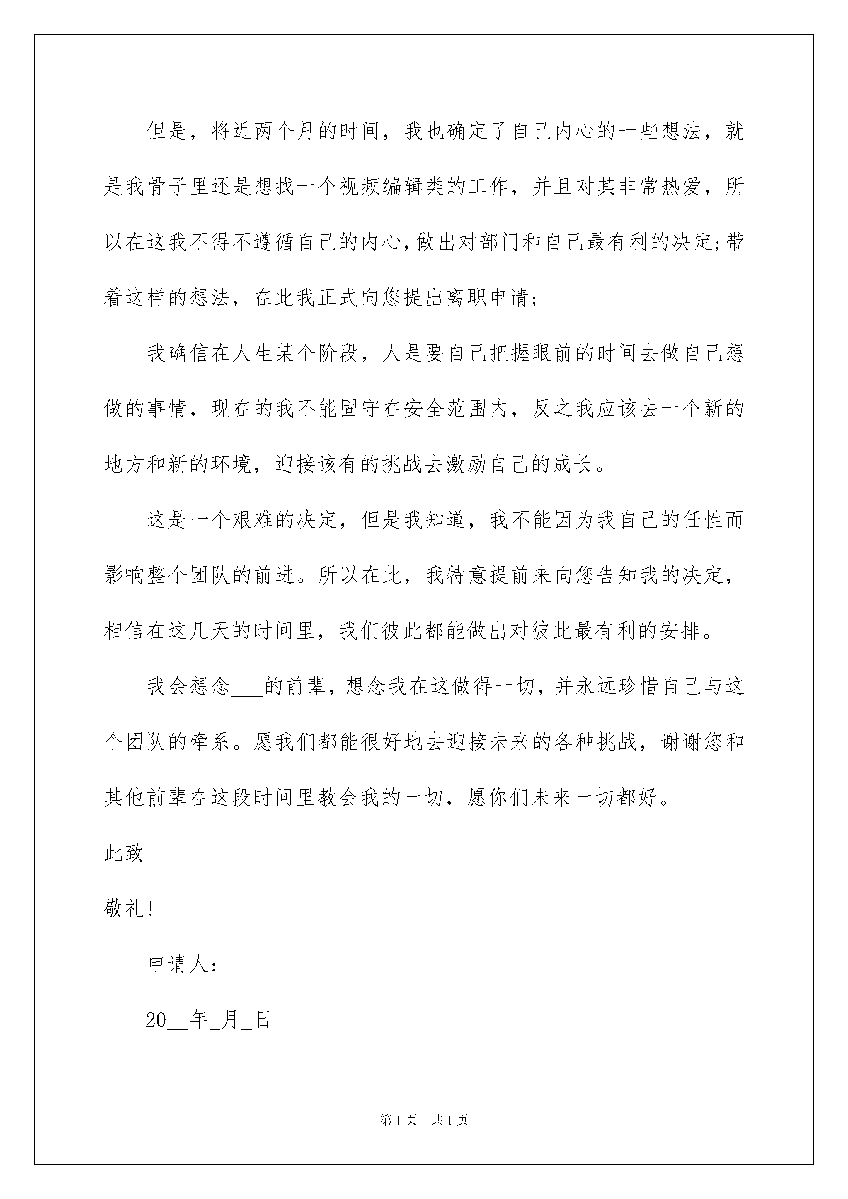 公司实习生辞职申请书集合15篇公司实习生辞职申请书1尊敬的领导:您好!我是x我清楚的感受到了自身能力的不足这段时间以来我感觉很是充实工作当中这些是应该要与的态度我深刻的感受到了这一点作为x的一名员工我的不断的去落实好相关的本职工作我知道这段时间我感觉非常吃力影响是不好的在这一点上面确实是应该要去反省的在接下来的工作当中这些是我应该要有的态度我渴望能够够在这个过程当中积累更多的经验这也是我应该要去努力维持好的确实感觉要做出这个决定和您来辞职我也是思考很久的。我