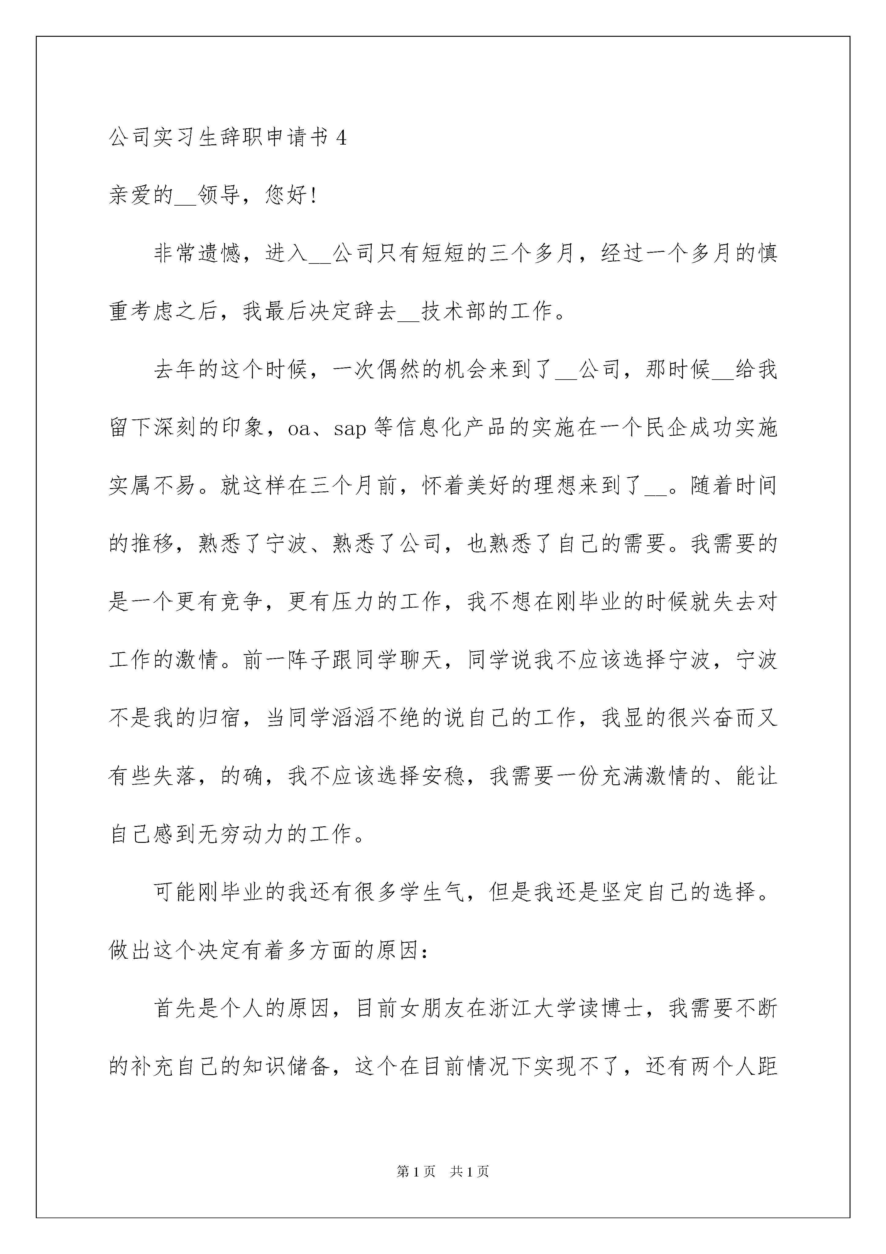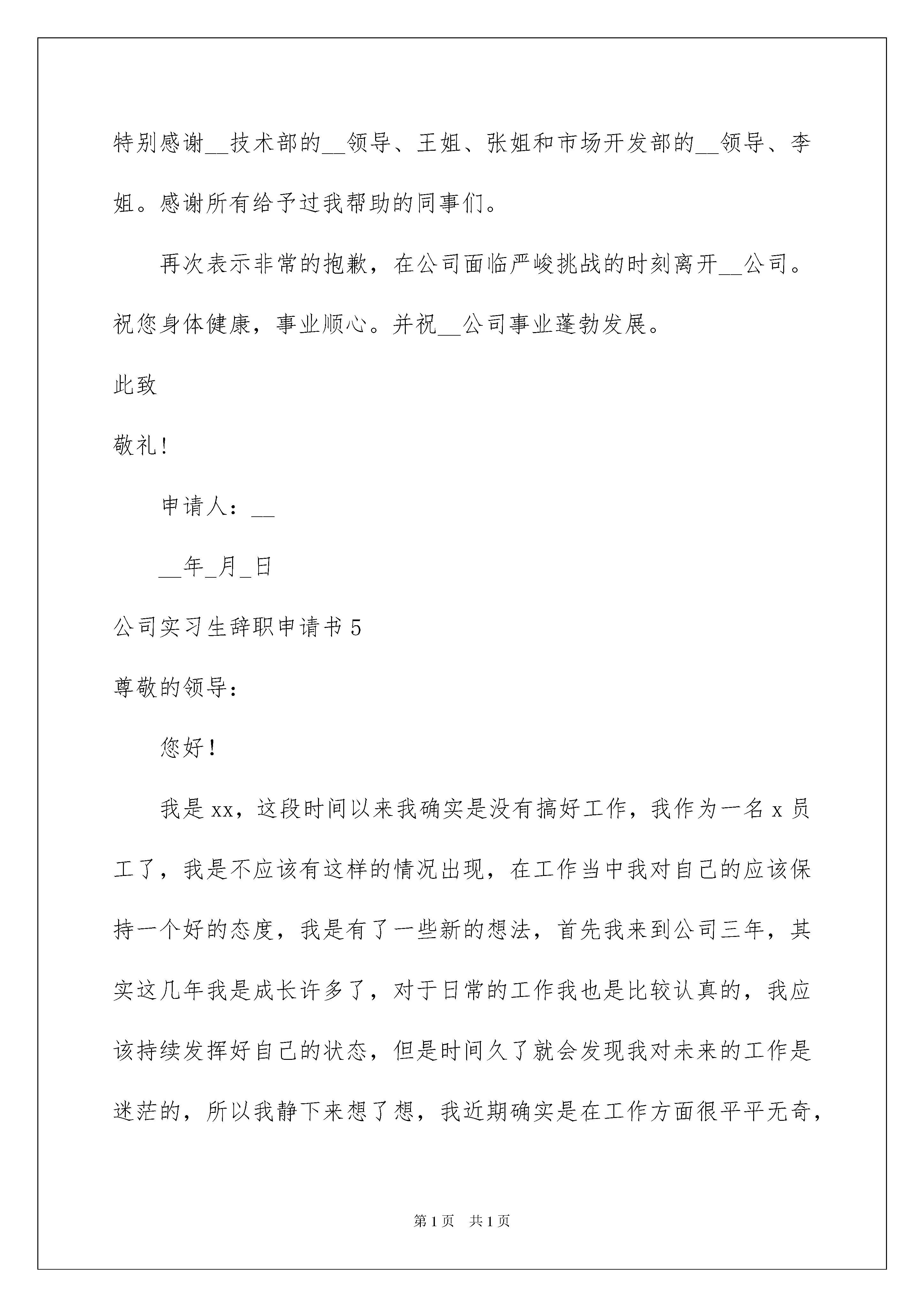 2022公司实习生辞职申请书集合15篇公司实习生辞职申请书在现在社会用到申请书的地方很多我们在写申请书的时候需要注意问题。一起来参考申请书是怎么写的吧以下是我为大家整理的公司实习生辞职申请书欢迎大家分享。公司实习生辞职申请书1