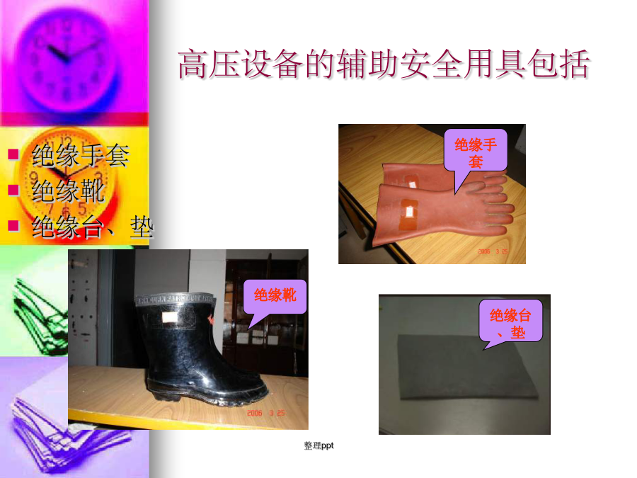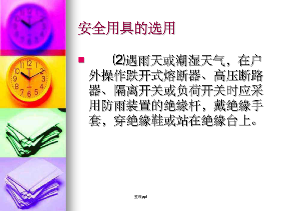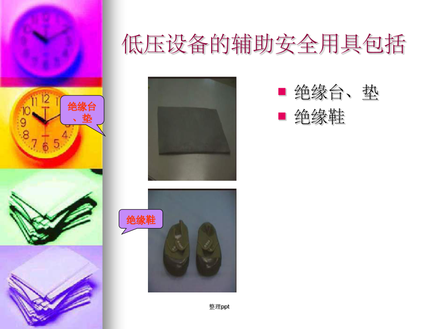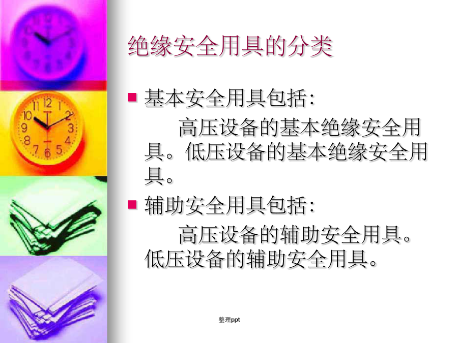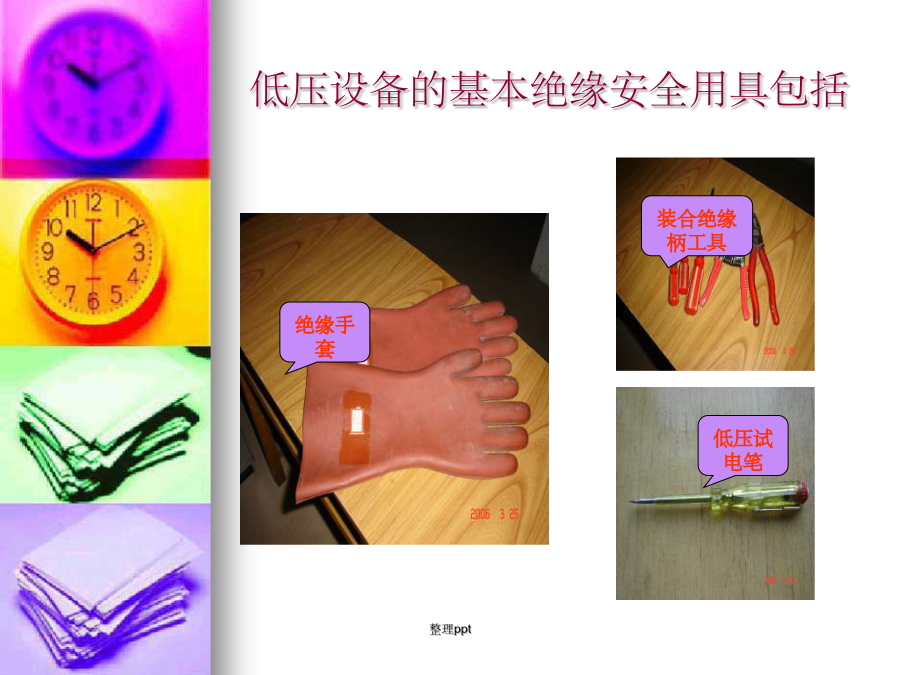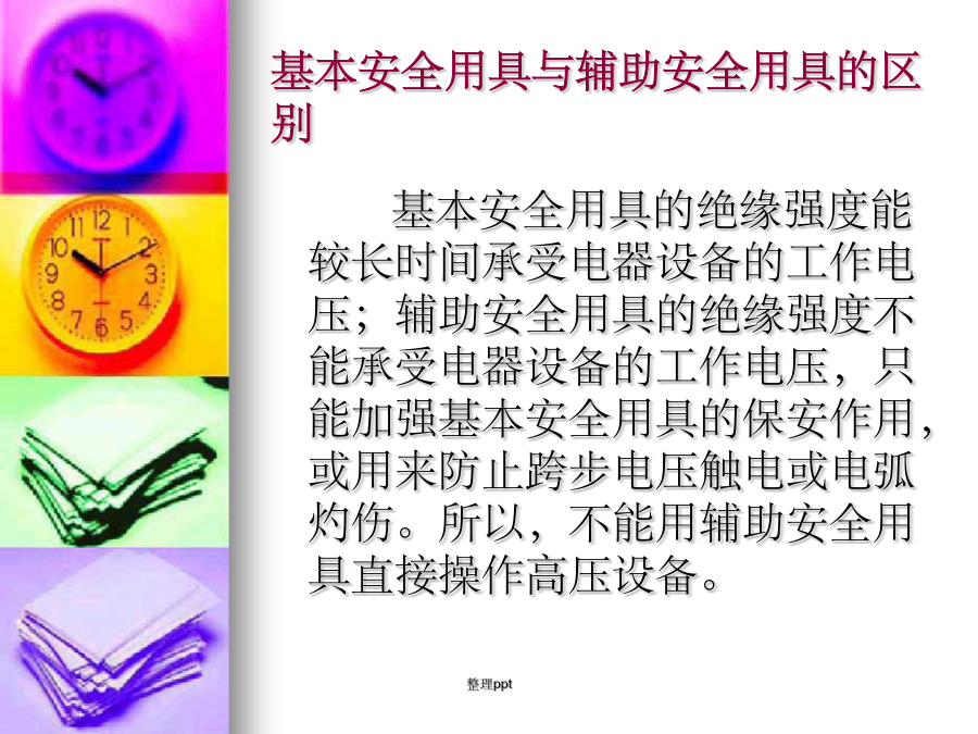 电工安全用具电工安全用具的作用绝缘安全用具的分类高压设备的基本绝缘安全用具包括低压设备的基本绝缘安全用具包括高压设备的辅助安全用具包括低压设备的辅助安全用具包括基本安全用具与辅助安全用具的区别安全用具的选用安全用具的选用安全用具的日常保养安全用具使用前的检查谢谢
