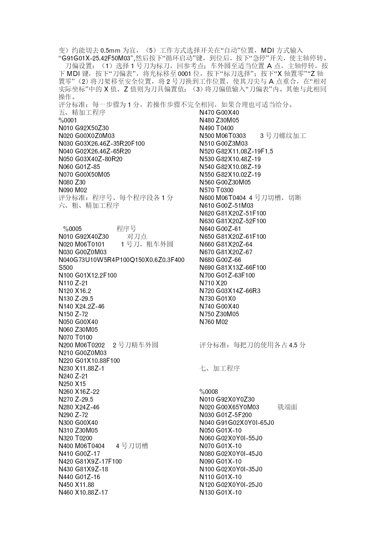 一、填空题(每空1分,共30分)1、数控机床按伺服系统的控制方式可分为、、。2、一般数控加工程序由程序号、、坐标值、、主轴速度、刀具、辅助功能等功能字组成。3、较常见的CNC软件结构形式有软件结构和软件结构。4、数控技术中常用的插补算法可归纳为插补法和插补法。5、当标尺光栅与指示光栅相对运动一个,莫尔条纹移动一个。6、数控机床主轴常用机、电结合的方法,即同时采用和变速两种方法。7、数控铣削加工需要增加一个回转坐标或准确分度时,可以使用配备或使用。8、改变刀具半径补偿值的可以实现同一轮廓的粗、精加工,改变刀