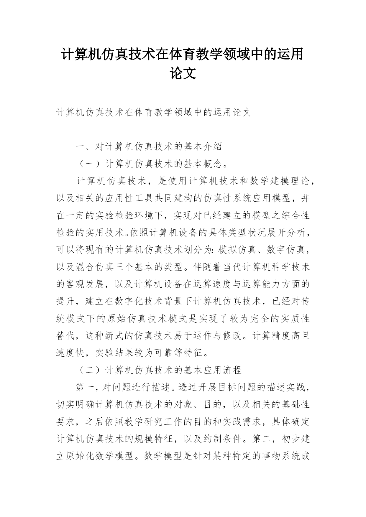 计算机仿真技术在体育教学领域中的运用论文.docx