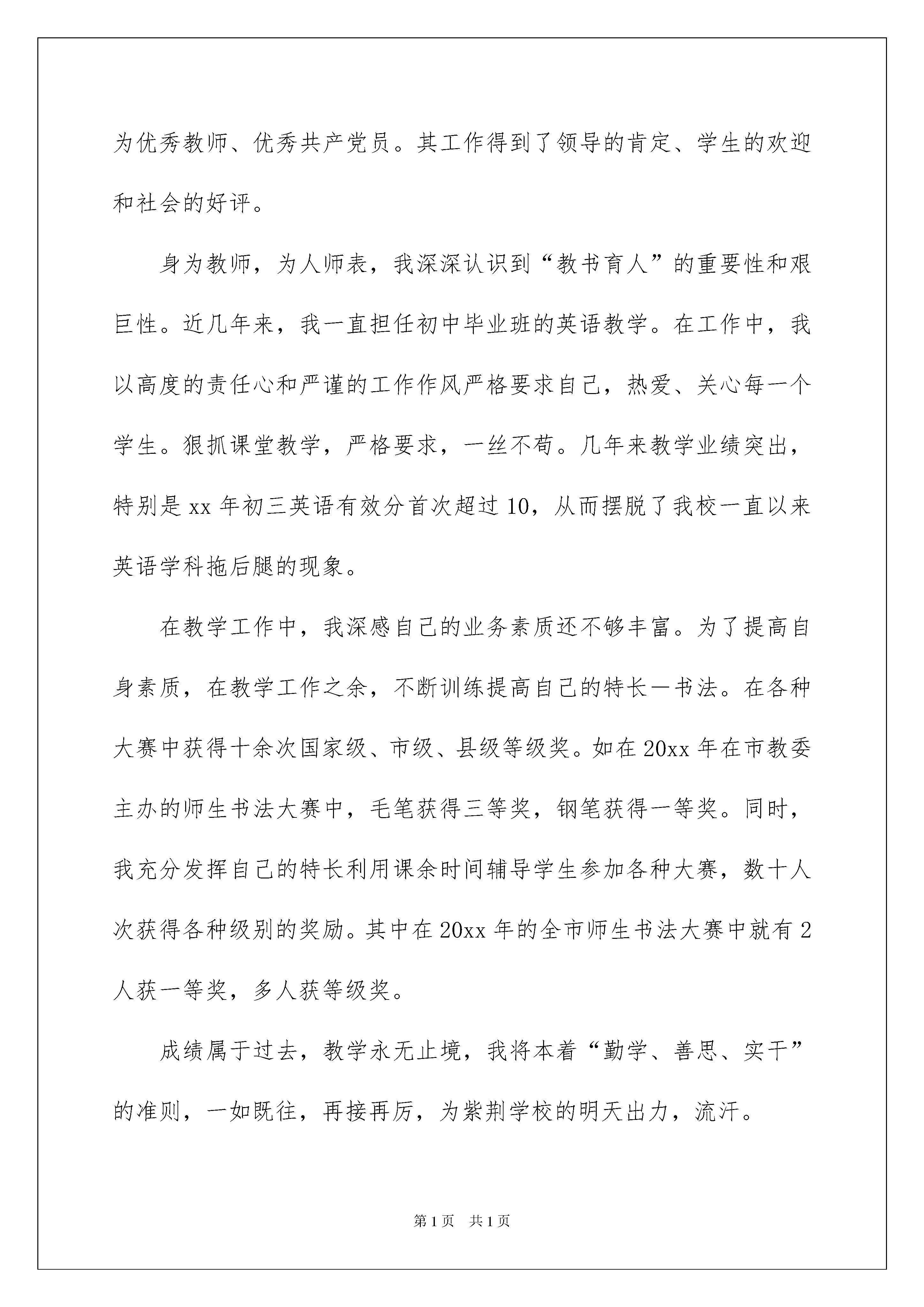 撰写人:___________日期:___________教师晋级述职报告汇编一基本情况曹红娟女1974年3月生教育硕士20__(请自填)年从江西省寻乌中学调入南海一中先后任英语备课组长、课题研究组组长(科组长)现任南海一中团委书记、文科党支部书记、党总支委委员先后被评(聘)为南海优秀教师、南海先进科研工作者、南海骨干教师、南海区教育科研专家库首批入库专家、南海区优秀党员及南海优秀党务工作者、南海十优团委书记、佛山市先进教育工作者等。20__(请自填)年12月由佛山市中学一级教师第二评审委员会