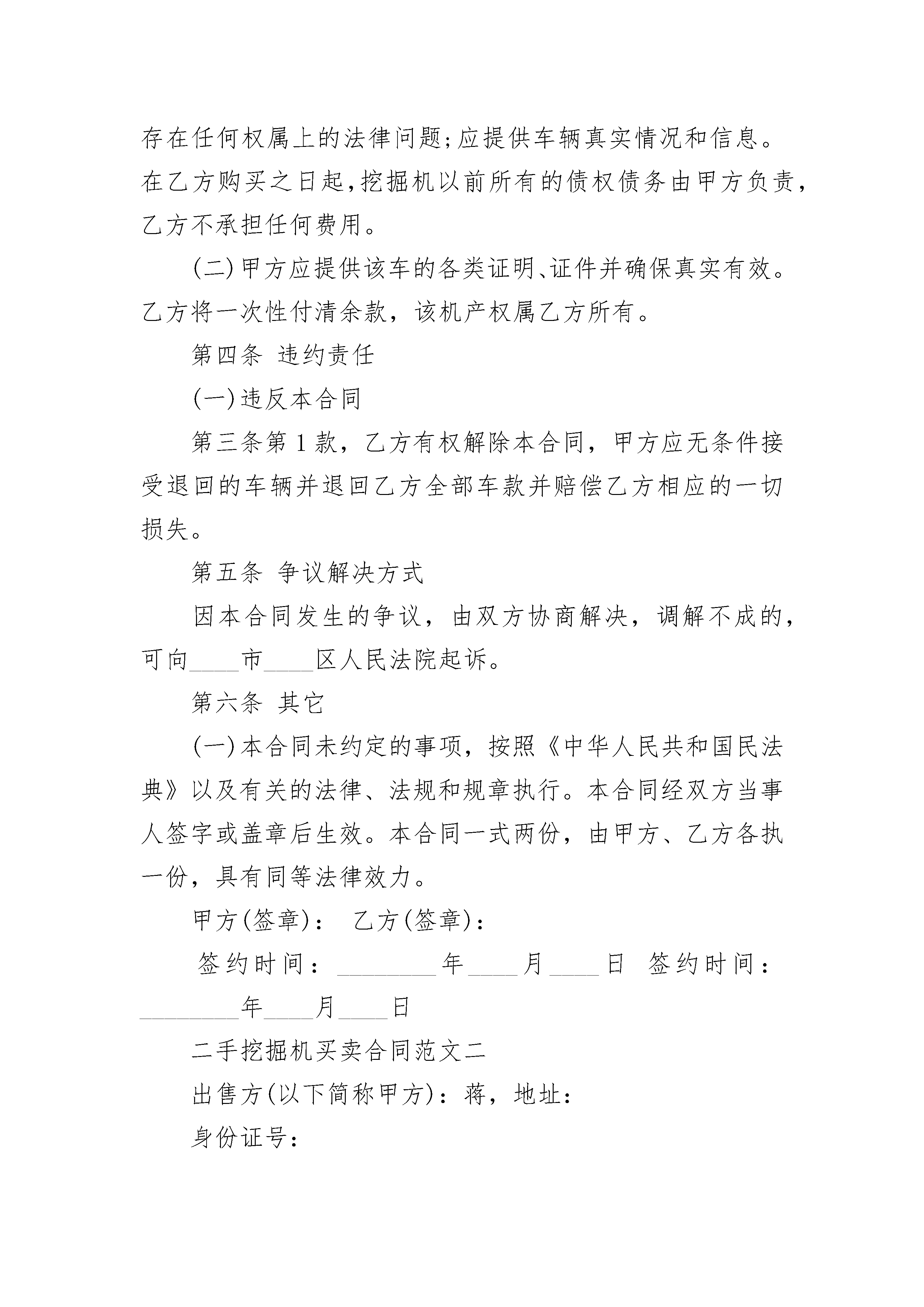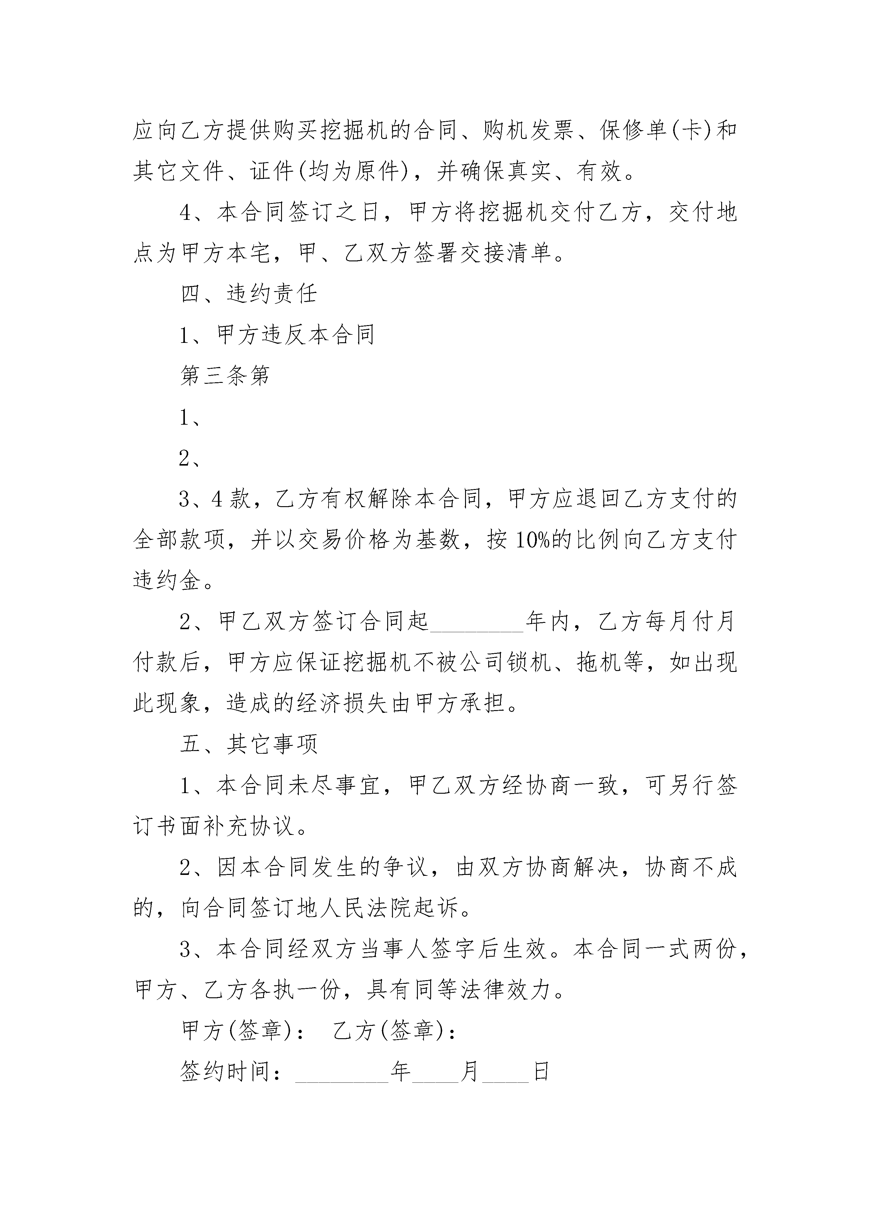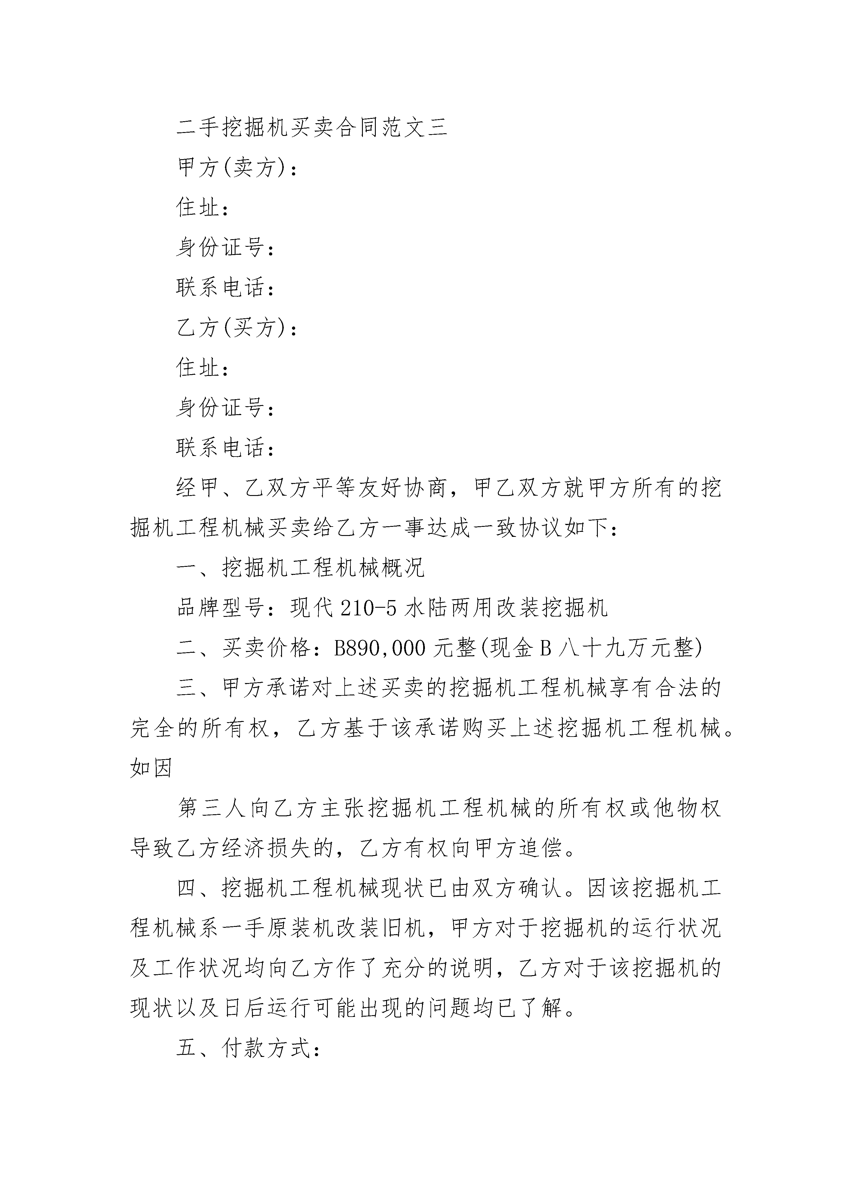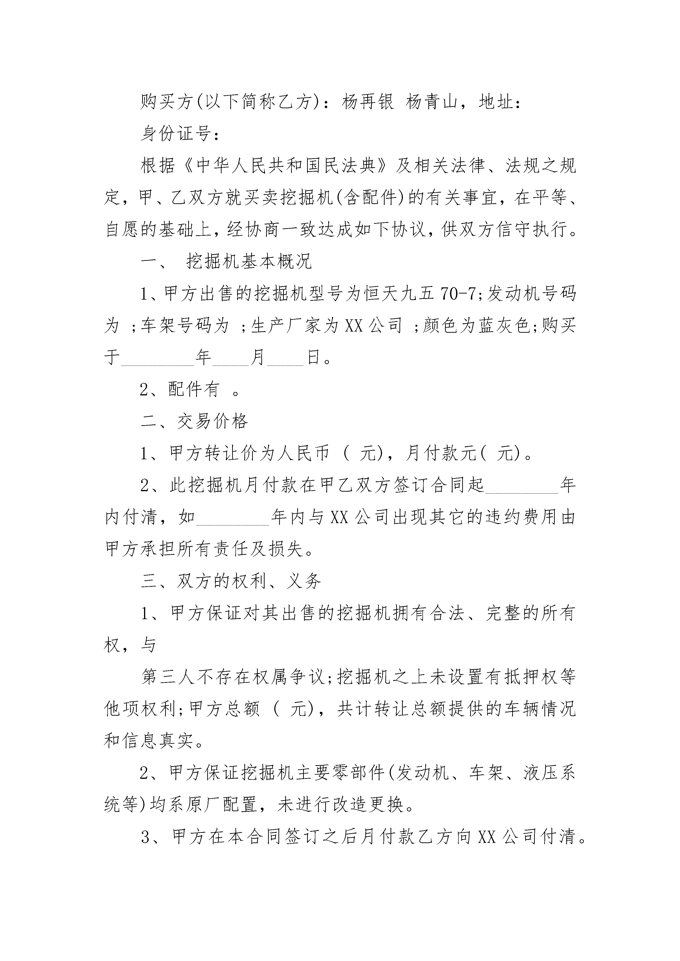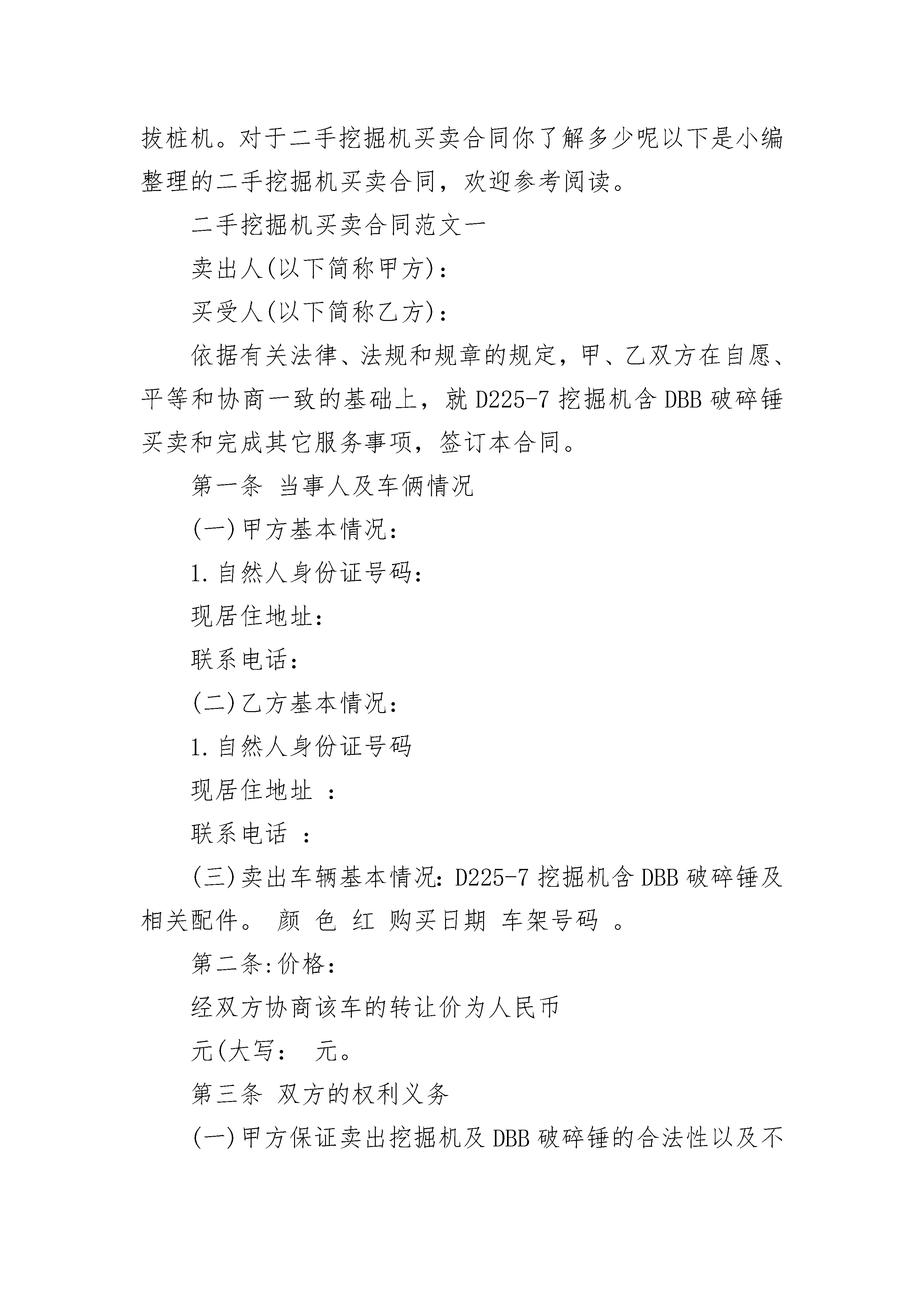 二手挖掘机买卖合同_二手挖掘机买卖合同模板.docx