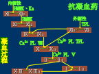 macrolides大环内酯类抗生素红霉素克拉霉素罗红霉素地红霉素红霉素-抗菌谱及临床应用【机制】与细菌核蛋白50S亚基结合,阻止肽链的形成及延伸,蛋白质合成受阻。【特点】第一代(1)窄谱(2)不耐酸(肠溶片)(3)血药浓度低(4)胃、肝红霉素erythromycin-不良反应林可霉素类林可霉素类林可霉素类林可霉素类林可霉素类第三节万古霉素类细胞胞壁粘肽的生物合成可分为三个阶段:胞浆内阶段:可被磷霉素破坏胞浆膜阶段:可被万古霉素破坏胞浆外阶段:可被β-内酰胺类抗生素破坏万古霉素类复习要点