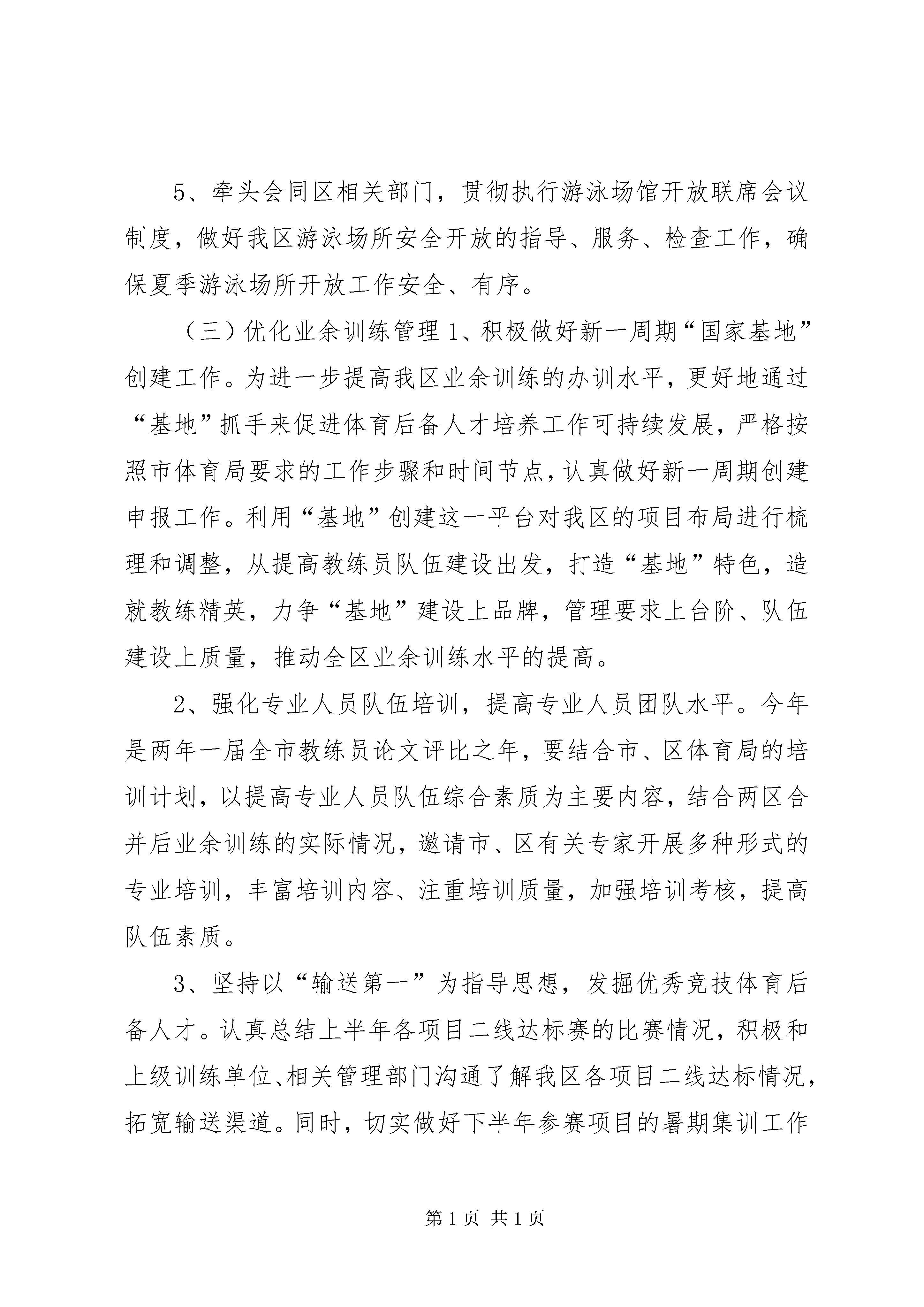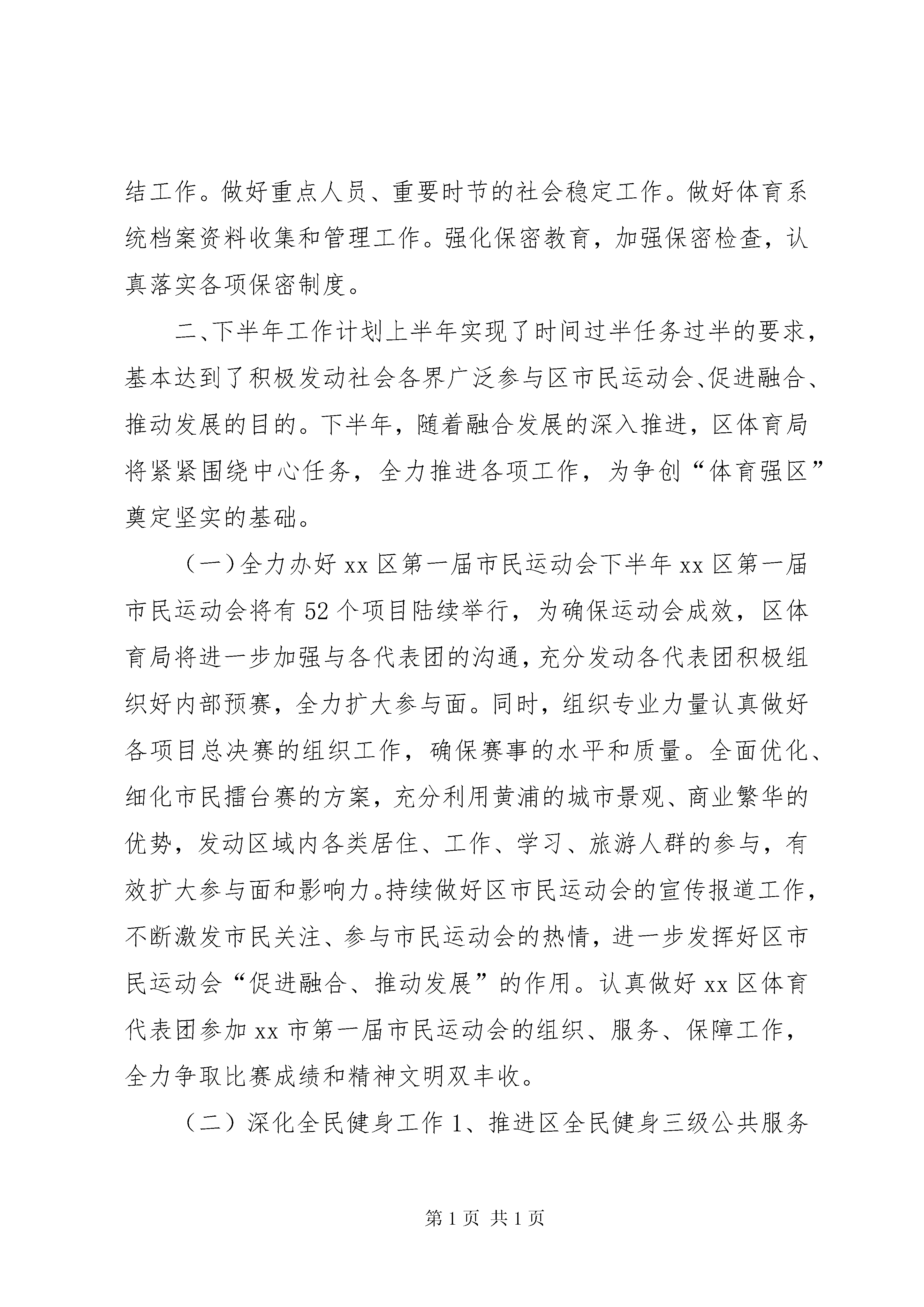 区体育局上半年工作报告20xx年是“撤二建一”后新的xx区开局之年,也是新黄浦体育事业融合发展的关键之年。区体育局紧紧围绕区委、区政府工作要求,以全力争创全市首批“体育强区”的发展目标,着力推进体育民生工程、争光工程和品牌工程,取得了良好的工作成效。现将有关工作情况报告如下:一、上半年工作情况(一)全力做好xx区第一届市民运动会筹备工作为有效促进融合、推动发展,经区委、区政府同意,定于今年6~11月举办xx区第一届市民运动会。区体育局在深入调查研究、广泛征求意见基础上制定了举办运