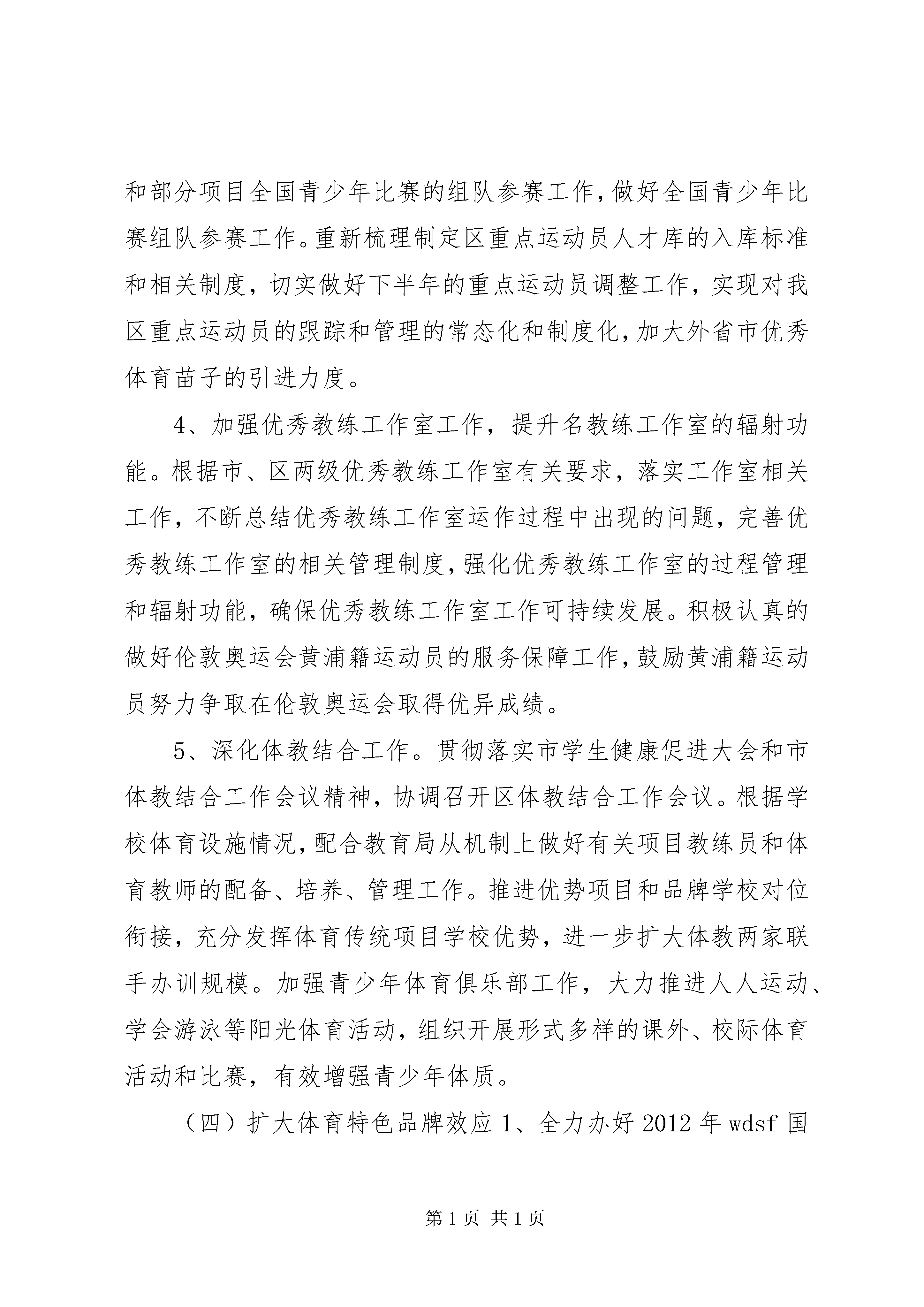 第PAGE\*Arabic\*MERGEFORMAT12页共NUMPAGES\*MERGEFORMAT12页区体育局上半年工作报告20xx年是“撤二建一”后新的xx区开局之年,也是新黄浦体育事业融合发展的关键之年。区体育局紧紧围绕区委、区政府工作要求,以全力争创全市首批“体育强区”的发展目标,着力推进体育民生工程、争光工程和品牌工程,取得了良好的工作成效。现将有关工作情况报告如下:一、上半年工作情况(一)全力做好xx区第一届市民运动会筹备工作为有效促进融合、推动发展,经区委、区政府同意,定于今