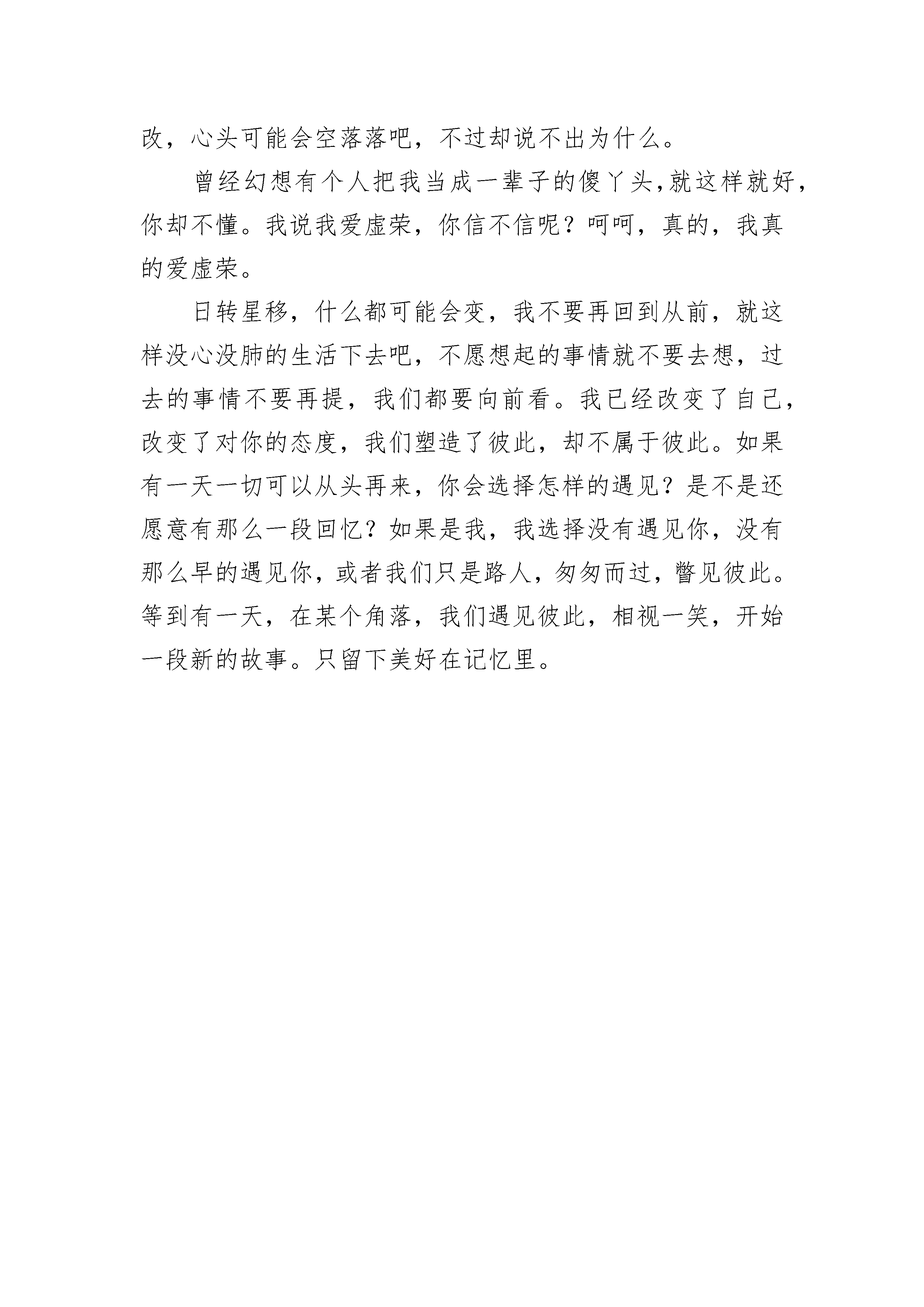 诗情画意优美散文诗情画意优美散文身在茫茫人海,仰望渺渺宇宙,惊鸿一瞥,你是一缕翩翩起舞的香魂。站在心潮浪海看你所在的方向,静静地,悄悄地,盼你回眸一笑,醉人心肠,魂断霓裳,把你轻盈地收藏在心底,等待花开的季节浓醉,为你把歌欢唱,唱一曲绵绵情歌,好叫那日月无光!我在心的沙漠久久彷徨,而今,在你眼眶中幸福地流浪,多少次痴情回眸中遇见你,是我今生最幸福浪漫的时光!错过了迷人的风景,心中溢满忧伤,沧海桑田,四野无光,只为在你眼前停留,诉一诉心中那一片爱的汪洋!我愿握着你轻盈的手,和一颗晶莹剔透的心轻舞飞扬,忘了时