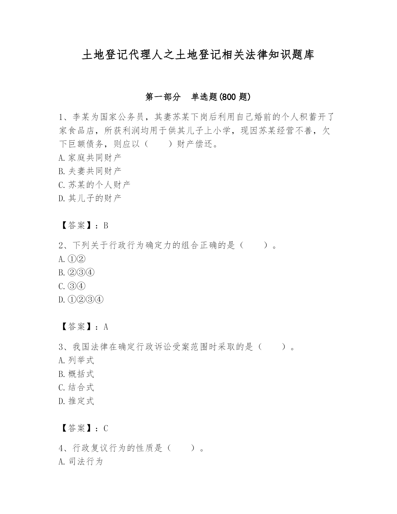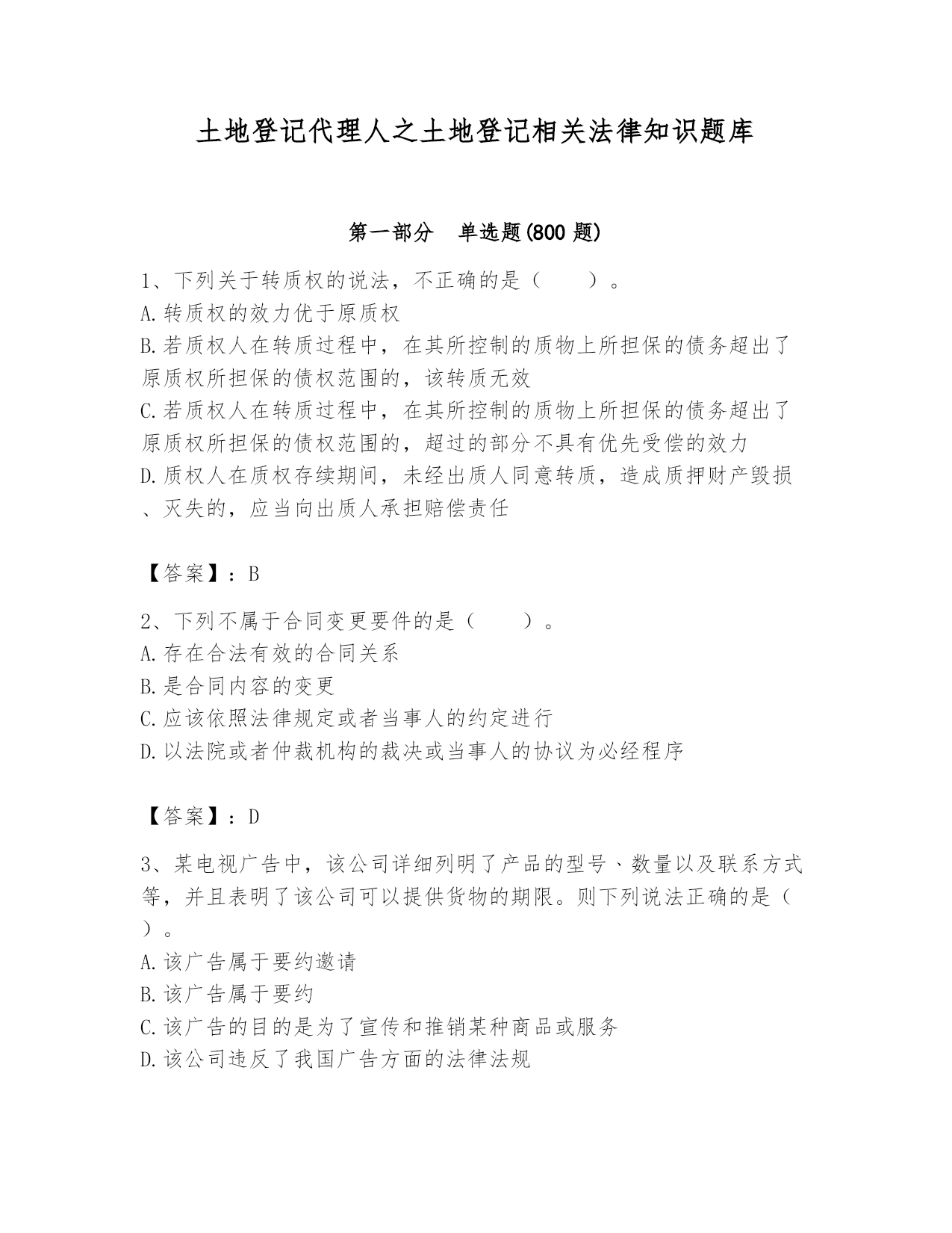 土地登记代理人之土地登记相关法律知识题库附参考答案【巩固】.docx