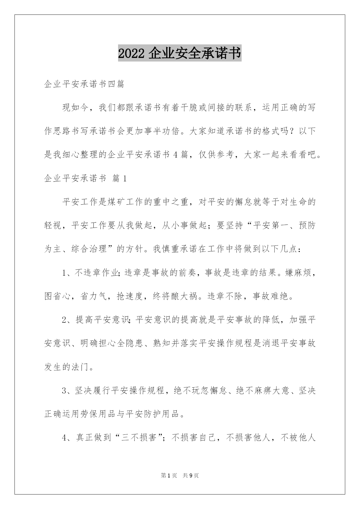 2022企业承诺书(必看)编辑精选范文.docx
