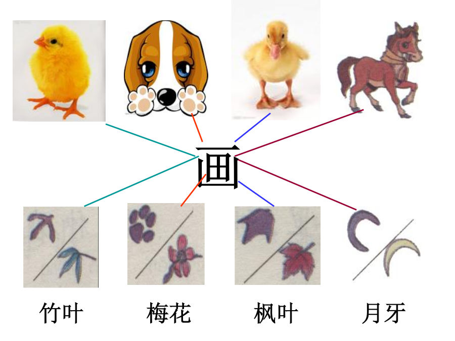 雪地里的小画家生字学习小鸡画竹叶,小狗画梅花,小鸭画枫叶,小马画月牙。冬眠的动物有:你会连吗?我会连!我会说叽叽叽,我是(),我的脚印像()。汪汪汪,我是(),我的脚印像()。嘎嘎嘎,我是(),我的脚印像()。咴咴咴,我是(),我的脚印像()。
