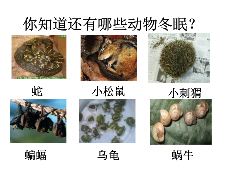 下雪啦,下雪啦!17.雪地里的小画家读一读学一学学一学小鸡画小狗画小鸭画小马画青蛙为什么没参加?他在洞里睡着啦。冬眠:在冬天,因为缺少足够的水和食物,一些动物在冬天不吃不喝睡大觉。冬眠是它们过冬的法宝。冬眠的动物我会连编一编:还有哪些小动物也会来画画?它们又会画些什么?把它编进诗歌吧!