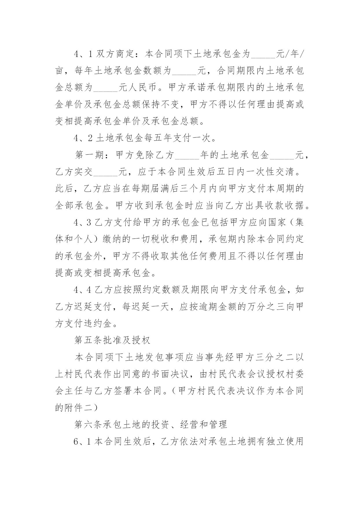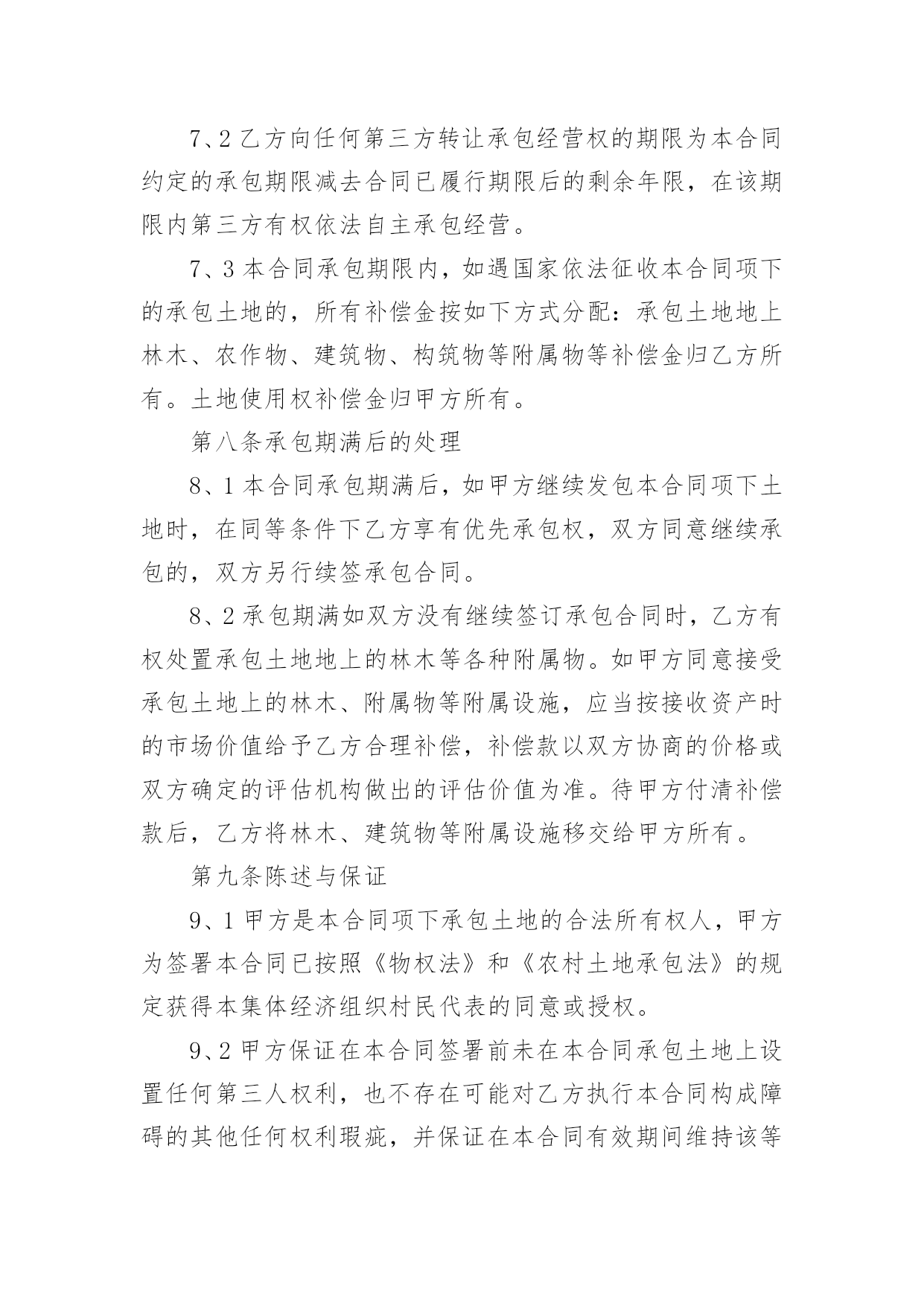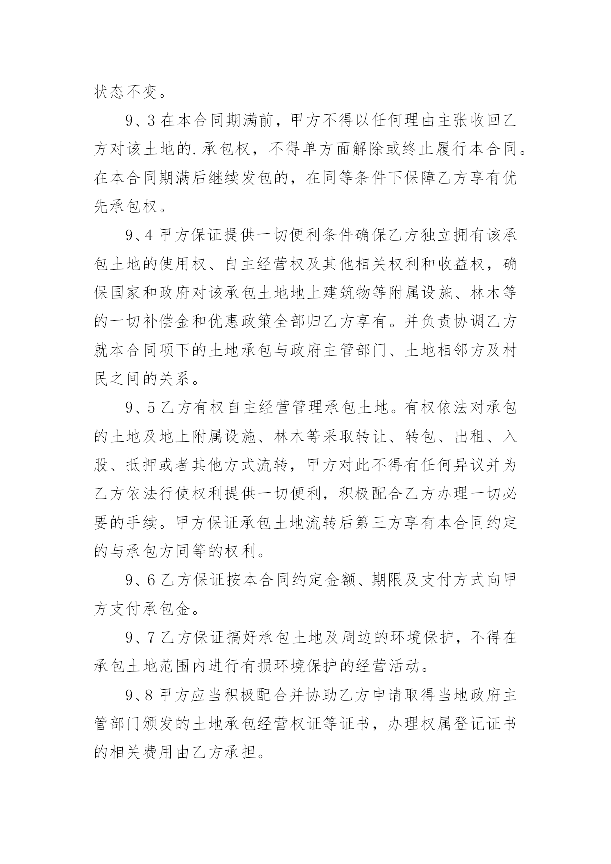 荒山承包合同精品荒山承包合同随着法律观念的深入人心,合同的使用频率呈上升趋势,合同的签订是对双方之间权利义务的最好规范。那么我们拟定合同的时候需要注意什么问题呢?下面是小编帮大家整理的精品荒山承包合同,希望对大家有所帮助。发包方:_________(以下简称甲方)承包方:_________(以下简称乙方)甲方为充分利用自身闲置资源,提高资源价值,经全体村民户主一致表决通过,同意将阳和坪荒山承包给乙方。为此,经双方共同协商一致达成如下协议:一、甲方自愿将阳和坪荒山承包给乙方,乙方自愿承包。四至界限为:东__